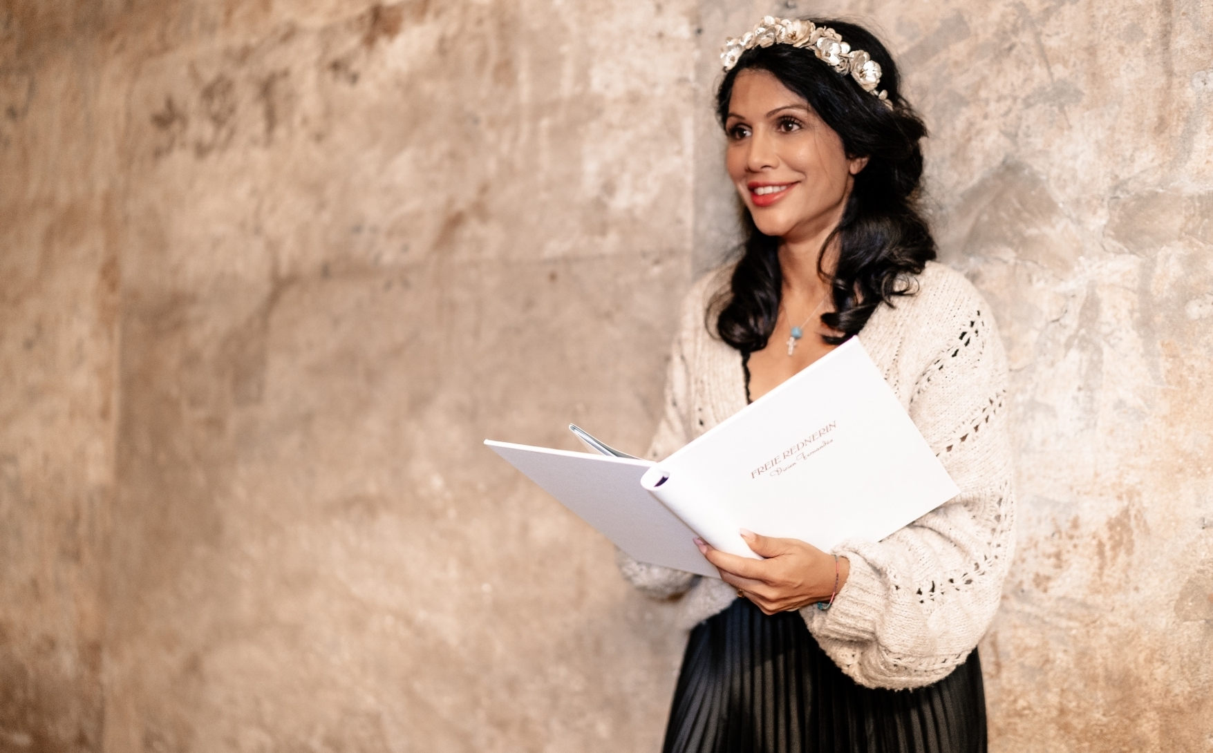 Eine unvergessliche Hochzeit mit viel Tüll und Romantik, das wünschen sich viele Brautpaare. Die Schorndorfer Festrednerin Vivien Fernandez gestaltet für Paare, die ohne kirchlichen Segen heiraten wollen, die passende Zeremonie. Ganz aufs Brautpaar zugeschnitten, formuliert sie eine persönliche Traurede, eingebettet in eine ganze Hochzeitszeremonie mit Einzug, Eheversprechen, Ritualen und Ringtausch - oder was sich das Brautpaar auch immer wünscht. Schreiben und Reden, das hat Vivien