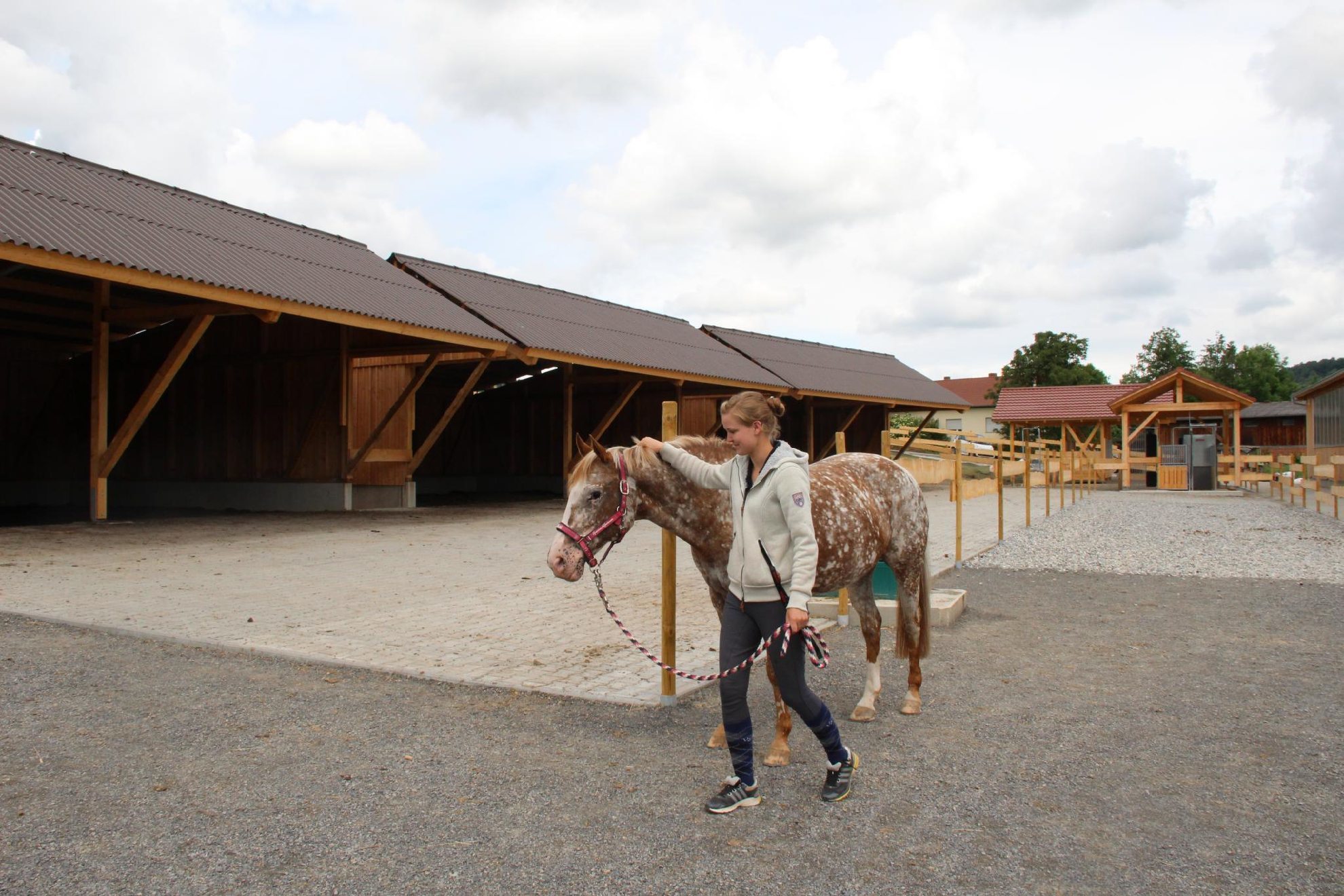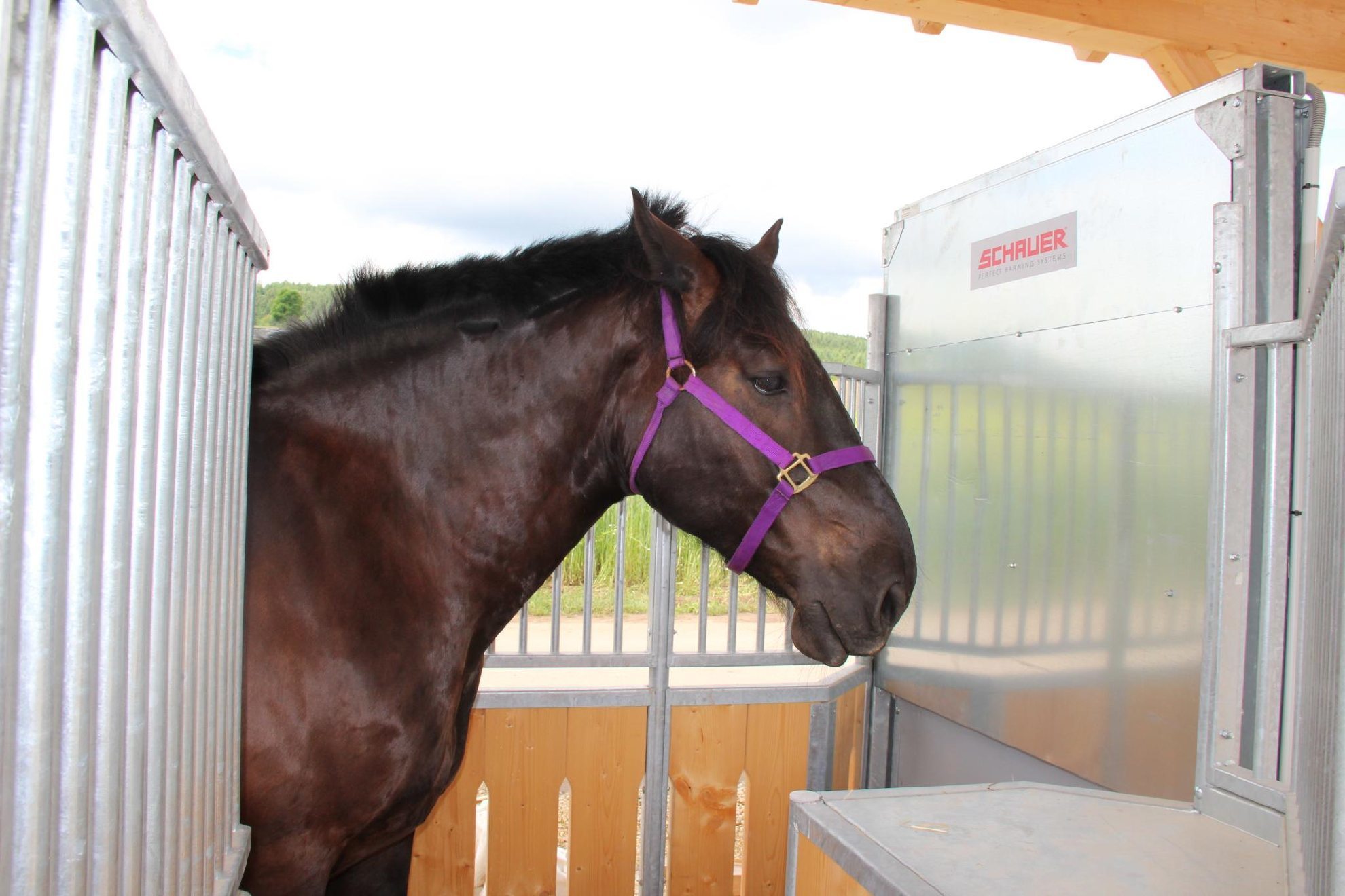 Aber nicht nur für die Tiere ist die Anlage optimal. Sie nimmt auch viel Last von den Pferdebesitzern. Schließlich müssen die Pferde nicht mehr von Hand gefüttert werden, auch die Bewegung übernehmen sie dank der großen verfügbaren Fläche selbst. Daniela Weigl, deren Pferd Milky seit einer Woche in Schornbach steht, ist begeistert. Ihr Vierhufer ist schon 19 Jahre alt. Das ist für Pferde schon ein ordentliches Alter. „Grad’ im Alter ist es wichtig, dass sie sich gut bewegt, ich hatte etwas Bedenken wegen der Arthrose.“ Seit Milky hier ist, sei sie richtiggehend aufgelebt, schnell habe sie verstanden, wie die Automaten und Tränken funktionieren. Die Möglichkeit zur Bewegung nehme das ehemalige Schulpferd mit wachsender Begeisterung wahr.
