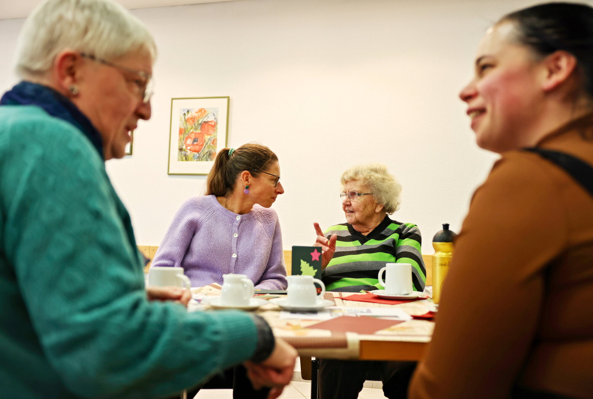 Es werden Weihnachtskarten gebastelt, es gibt Kaffee und Kuchen im