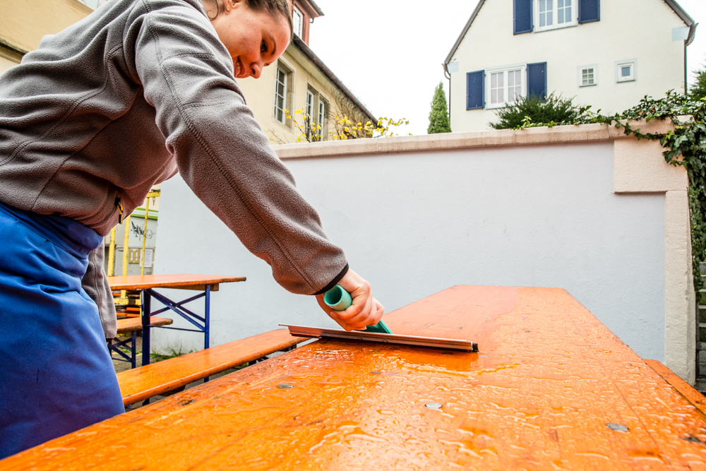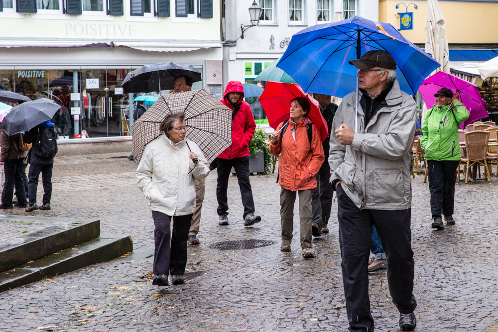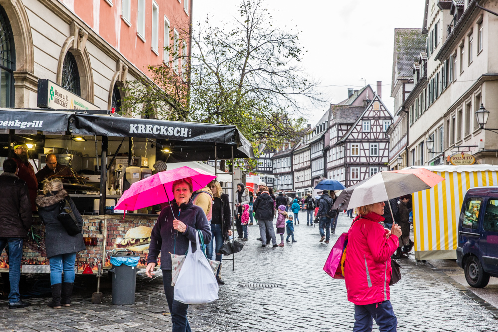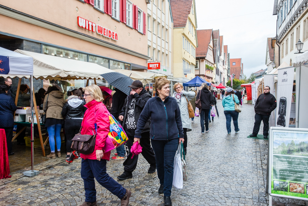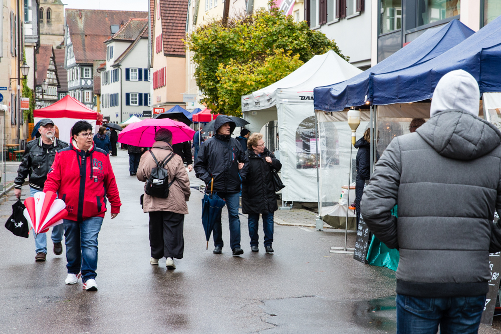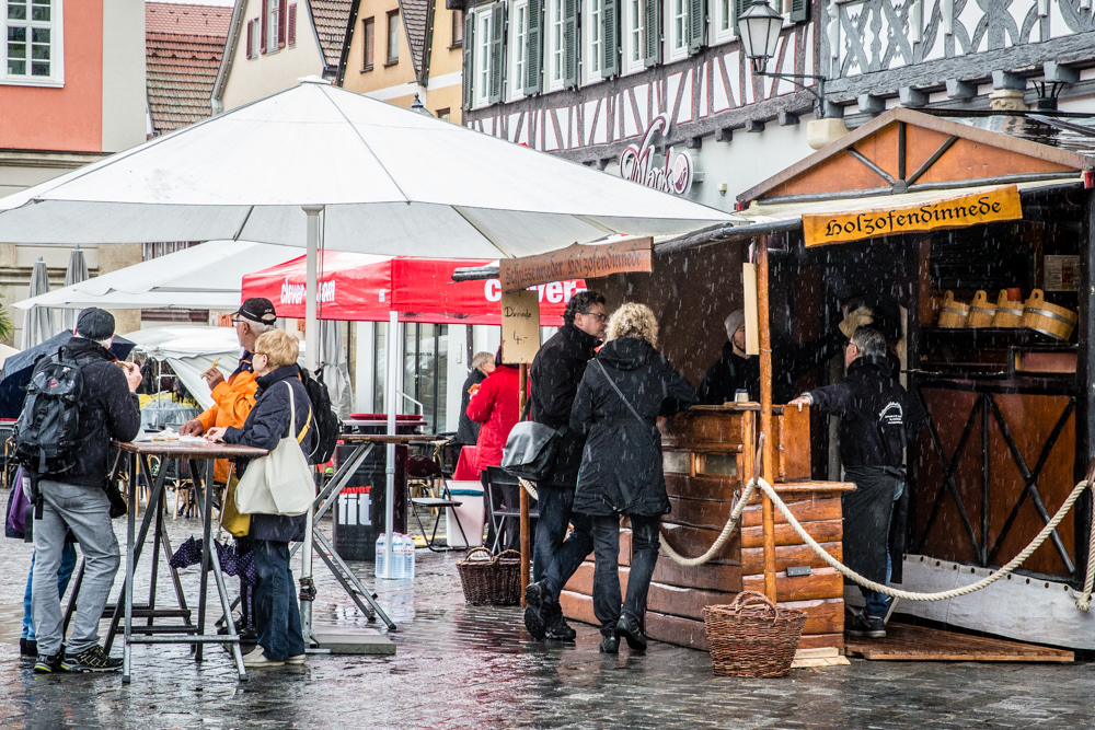Und sie wurden belohnt: Mag der Stadtmarkt dieses Mal auch erst spät in Schwung gekommen sein – mit ein paar Tausend Besucher weniger als in den Vorjahren – die Veranstalter sind zufrieden: „Wir sind“, sagt Fink, „mit einem dicken blauen Auge davongekommen“. Ein guter Tag für Schorndorf also – und daran hat das bewährte Konzept sicher seinen Anteil: Mit einem eingespielten Team organisiert Schorndorf-Centro den Stadtmarkt schon seit vielen Jahren. Bei der Standauswahl wird auf Vielfalt geachtet – und auf Vorauskasse: „Sonst hätte man bei so einem Wetter wie heute zwei Stände“, ist sich Fink sicher.