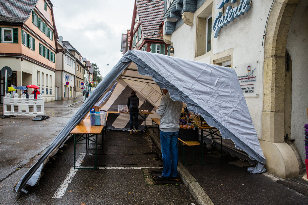 Ansonsten aber gab es kaum Ausfälle: Vier, fünf Stadtmarkt-Händler, mehr nicht, haben wegen Wind und Wetters abgesagt. „Die Profis“, weiß Schorndorf-Centro-Geschäftsführer Ulrich Fink, „wissen, wie man sich sichert für diese Fälle“.