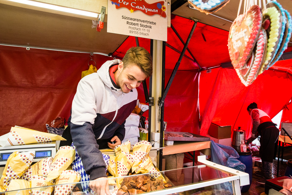 Gebrannte Mandeln, Magenbrot und Lebkuchenherzen – Leckereien, die zum Stadtmarkt gehören. Doch die Anzahl der Süßigkeitenstände halten die Veranstalter bewusst in Grenzen.