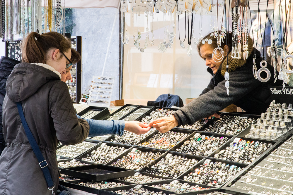 Und obwohl die Standgebühren im oberen Bereich liegen, 80 Prozent der Beschicker sind dem Stadtmarkt seit Jahren treu – und kommen, wie der französische Delikatessenhändler, für den einen Tag sogar aus dem Elsass angefahren. Das kommt nicht von Ungefähr: Im Gegensatz zum Krämermarkt wird hier darauf geachtet, dass die Auswahl für die Kunden groß bleibt. Ein Lederwarenstand am anderen, das gibt’s beim Stadtmarkt nicht. Und auch bei den Süßigkeitenhändlern ist die Marschroute klar: „So lange niemand abspringt, gibt es keinen neuen.“
