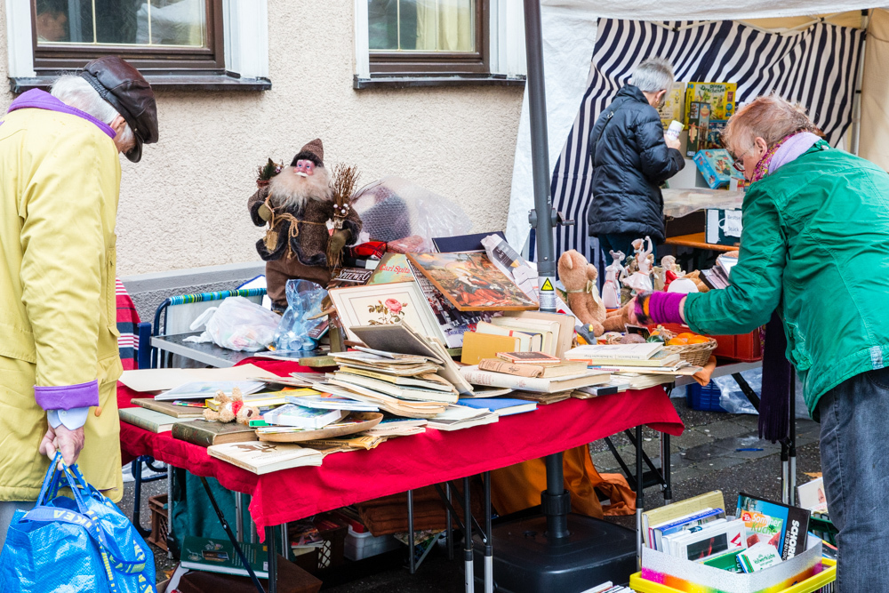 Nur Flohmarktwetter war am Sonntag nicht – und das war auf dem Parkplatz An der Mauer schnell zu spüren: Viele Lücken zwischen den Ständen und Nachwuchshändler, die über die Mittagszeit hinaus nicht durchgehalten haben. Klüger war’s, der Wetter-App zu vertrauen und erst nach dem Regen den Stand mit Waren zu bestücken. So konnten – für Taschengeldbeträge – doch noch ein paar Puppen und Spiele, Kleider und Bücher die Besitzer wechseln.