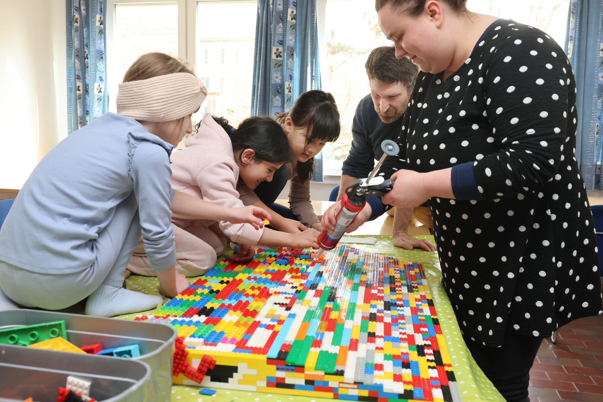In einem der Räume sammeln sich alle: Viele bunte Legosteine liegen mitten auf dem Tisch. „So, und wer möchte denn an unserer Legorampe weiterbauen?“, fragt Stefan Lutz, Jugendreferent des CVJM