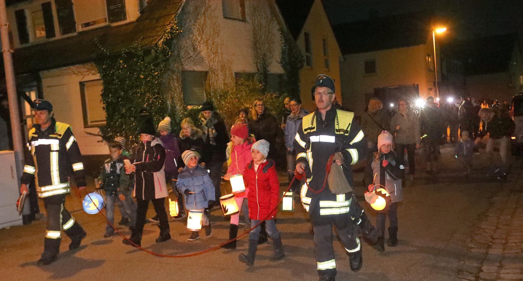 Damit der Umzug gut geschützt war, war die Feuerwehr mit 22 Kameraden unterwegs, die die Straßen abgesichert haben, berichtet Kommandant Michael Hurlebaus. Darunter gab’s nicht wenige, die früher selbst mit der Laterne gelaufen sind.