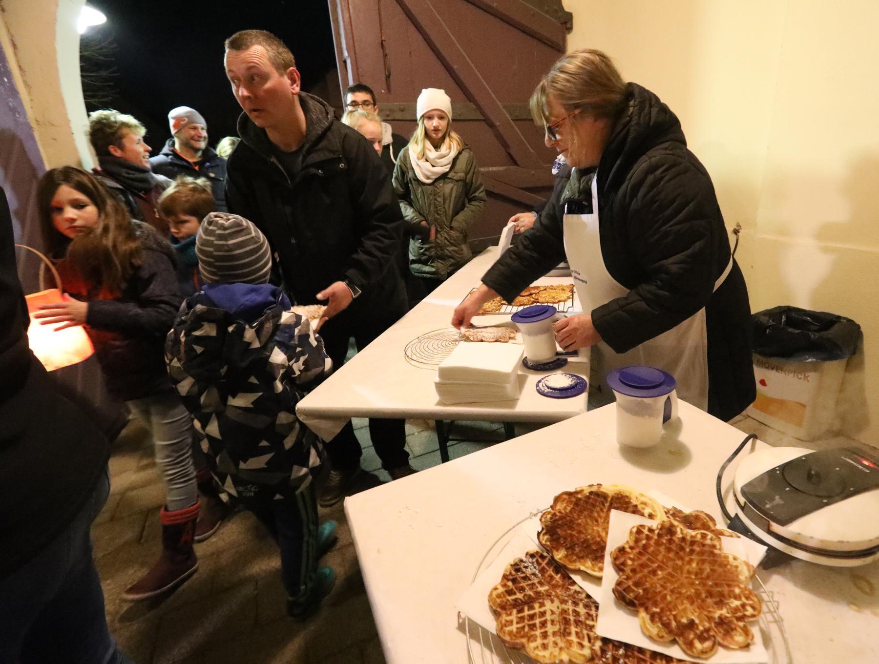 Von der Friedhofstraße nimmt der bunte Zug seinen Weg durch die Straßen und kommt am Schloss an. Hier gibt es Rote Würste vom DRK-Ortsverein, und die Helfer des Fördervereins Urbacher Kranken- und Altenversorgung bieten heiße Waffeln an. Rund 400 der süßen Leckereien haben die Damen verkauft, schätzt Irmgard Stegmaier vom Helferkreis.