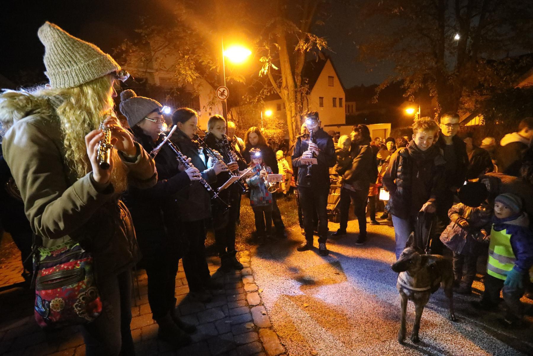 Der Mond scheint, der Abend ist herbstlich-trocken, gutes Wetter für den Lampionumzug. Der nimmt, freundlich leuchtend und musikalisch bestens begleitet, seinen Weg durch das abendliche Urbach. „Komm’, wir woll’n Laterne laufen“, „Durch die Straßen auf und nieder“ und andere beliebte Lieder spielen die Musiker des Musikvereins Urbach. Auch der evangelische Posaunenchor unterhält die Besucher und begleitet den Lampionumzug mit Liedern wie „Ich geh’ mit meiner Laterne“ oder „Wer hat die schönsten Schäfchen?“.