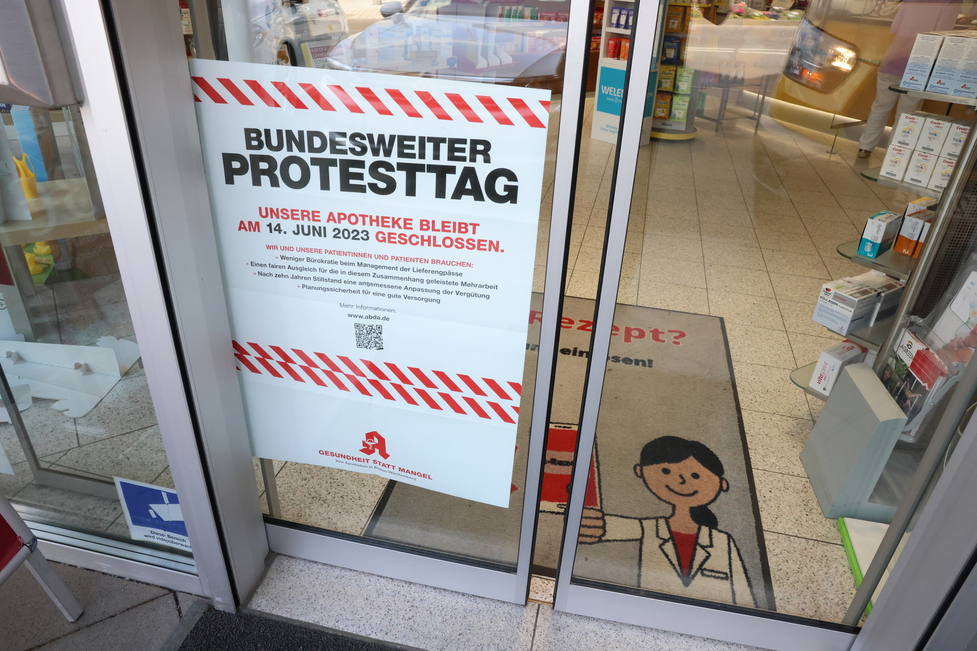 Dass die Bahn streikt, Erzieherinnen für bessere Arbeitsbedingungen kämpfen und das Flugpersonal am Flughafen die Arbeit niederlegt, das ist man mittlerweile fast gewöhnt. Aber die Apotheker und Apothekerinnen? Die Aufsteller vor den Schorndorfer Apotheken, mit denen die Pharmazeuten zurzeit auf einen bundesweiten Protesttag am 14. Juni verweisen, sind jedenfalls ein ungewohnter Anblick. Unter dem Motto „Apotheken kaputtsparen? Mit uns nicht!“ protestieren die deutschen Apotheken am