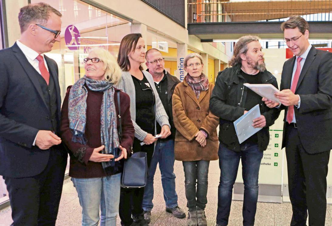 Betriebsrat und Geschäftsleitung der Kliniken ziehen an einem Strang, betonte Geschäftsführer Dr. Marc Nickel am Rande der Unterschriftenübergabe. Seit Mittwoch letzter Woche haben bereits 740 Mitarbeiter den Aufruf „Investieren Sie in uns!“ an die Aufsichtsräte der Kliniken und die Kreisräte unterschrieben (siehe Infobox „Der Aufruf“).