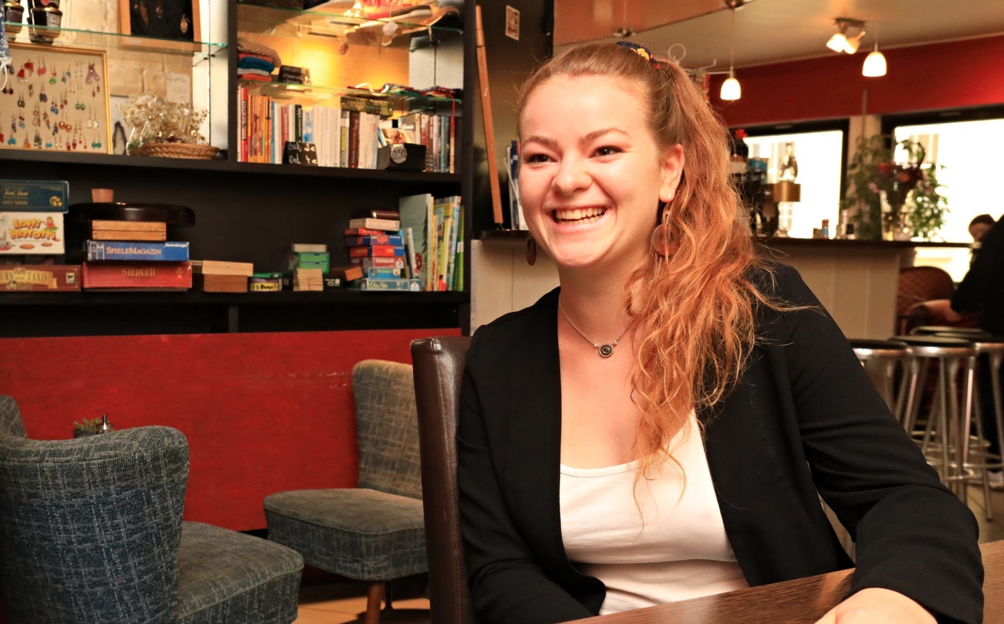 Mareike Wolff im Café de Ville, in dem die ehemalige Waldorfschülerin als Kellnerin arbeitet. © ZVW/Gabriel Habermann
