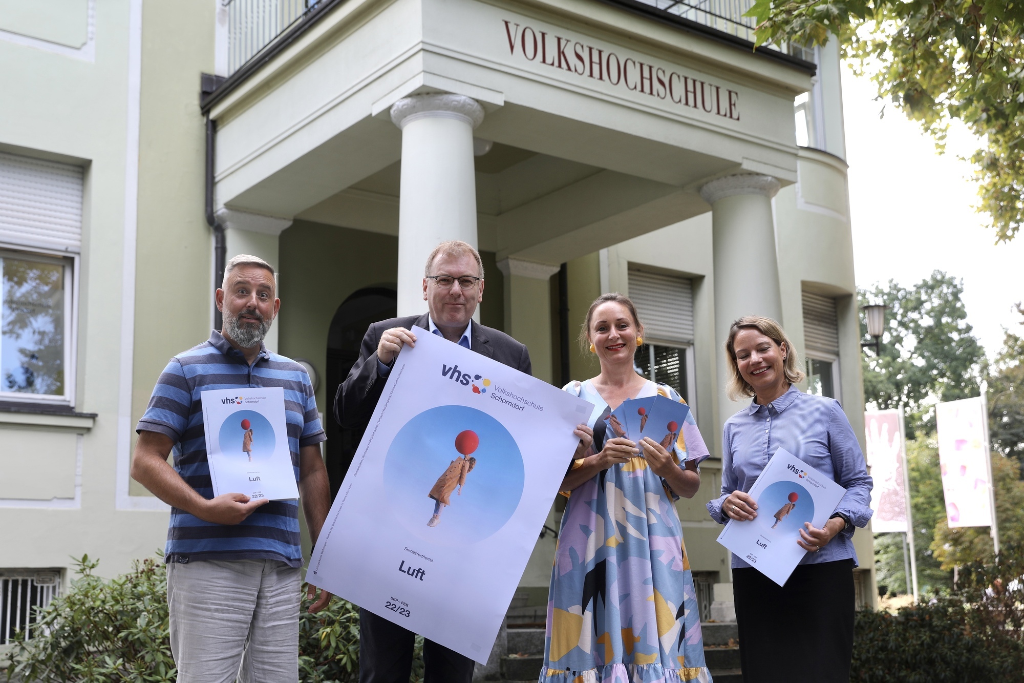 Schwebend küsst eine Frau einen knallroten Luftballon – das Cover des neuen Programmheftes der Volkshochschule soll die gedanklichen Assoziationen des herbstlichen Semesterthemas „Luft“ hervorheben: Fröhlichkeit, Freiheit, Frische, Leichtigkeit. Wie immer habe man sich gemeinsam überlegt, unter welchen Hauptaspekt man die kommenden Vhs-Monate stellt, so Volkshochschulleiter Oliver Basel. Anknüpfend an das vergangene Thema „Wasser“ hat man sich nun für ein weiteres Element entschieden. Mit