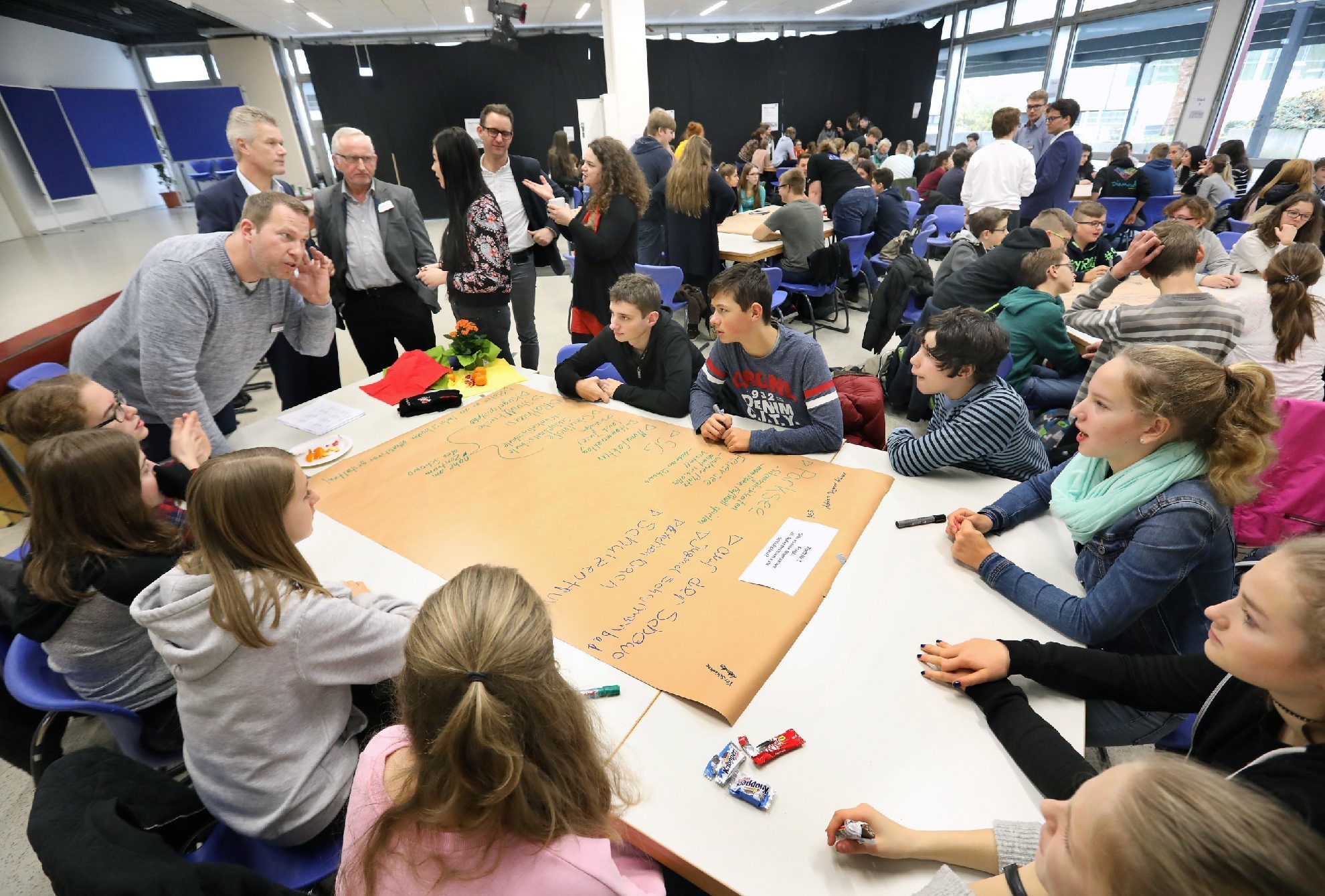 Die 120 Jugendlichen aller Schulen thematisierten die Themen „SchoWo“ und „Jugendcafé“ anhand verschiedener Fragestellungen. Die Stadträte konnten die Ideen kommentieren.