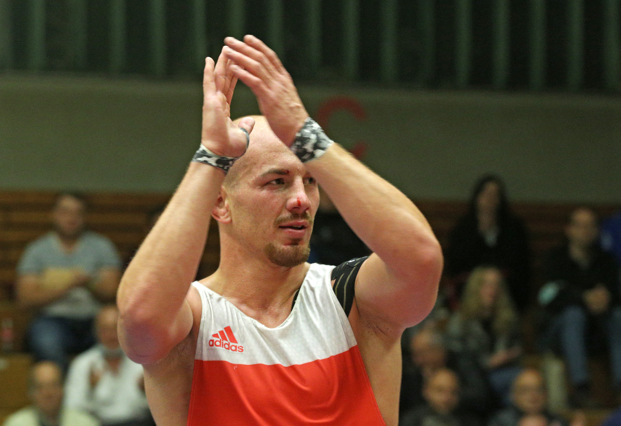 Frank Stäbler verabschiedet sich von den Schorndorfer Zuschauern. Für den ASV konnte er nur einmal auf die Matte gehen. © Ralph Steinemann Pressefoto