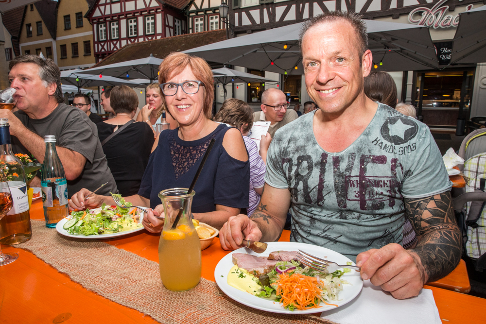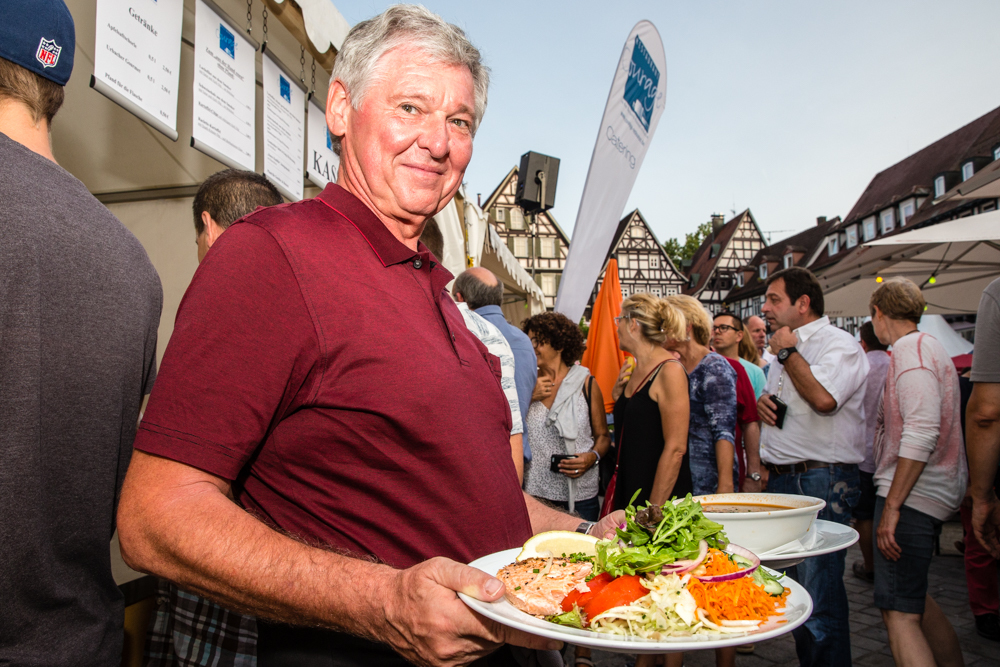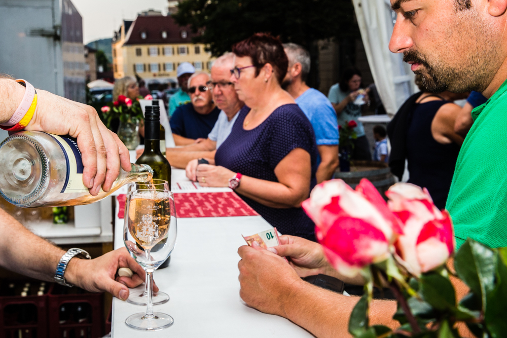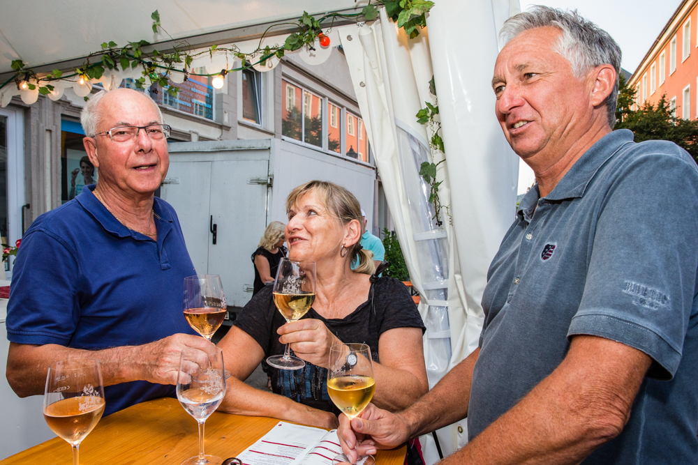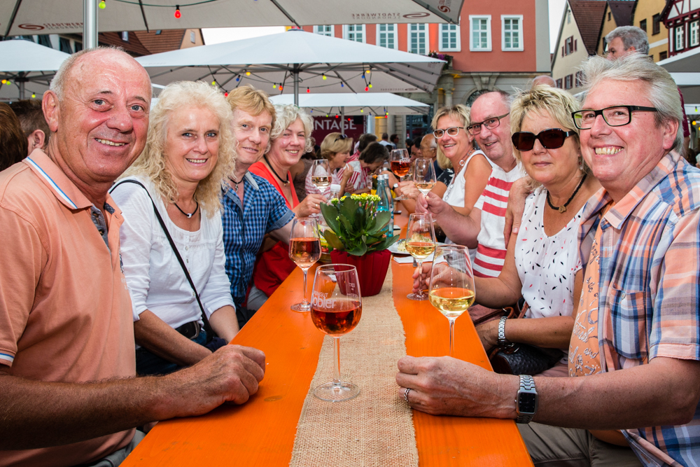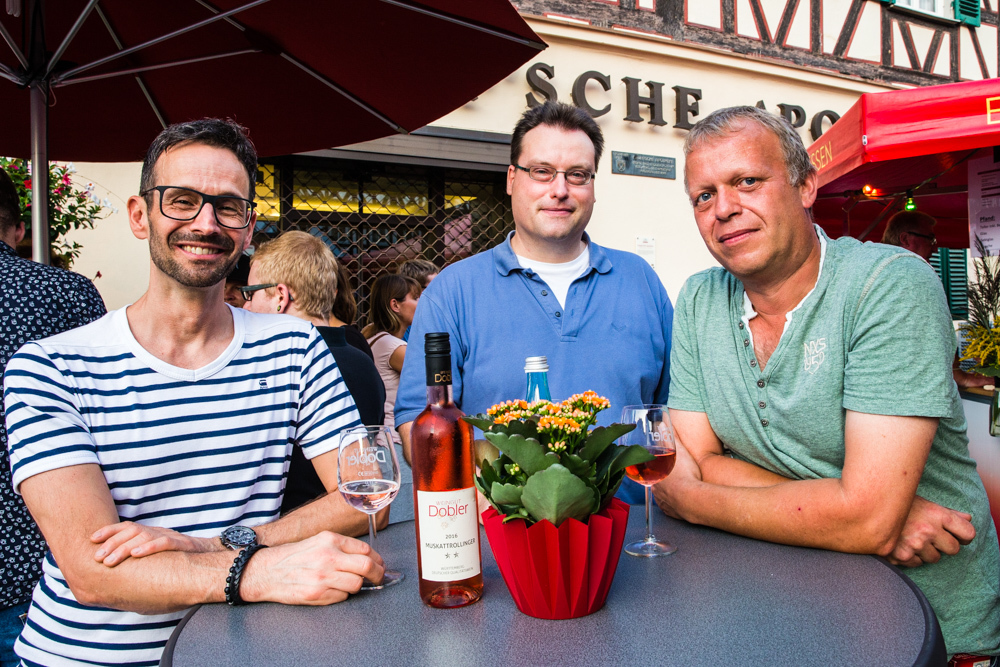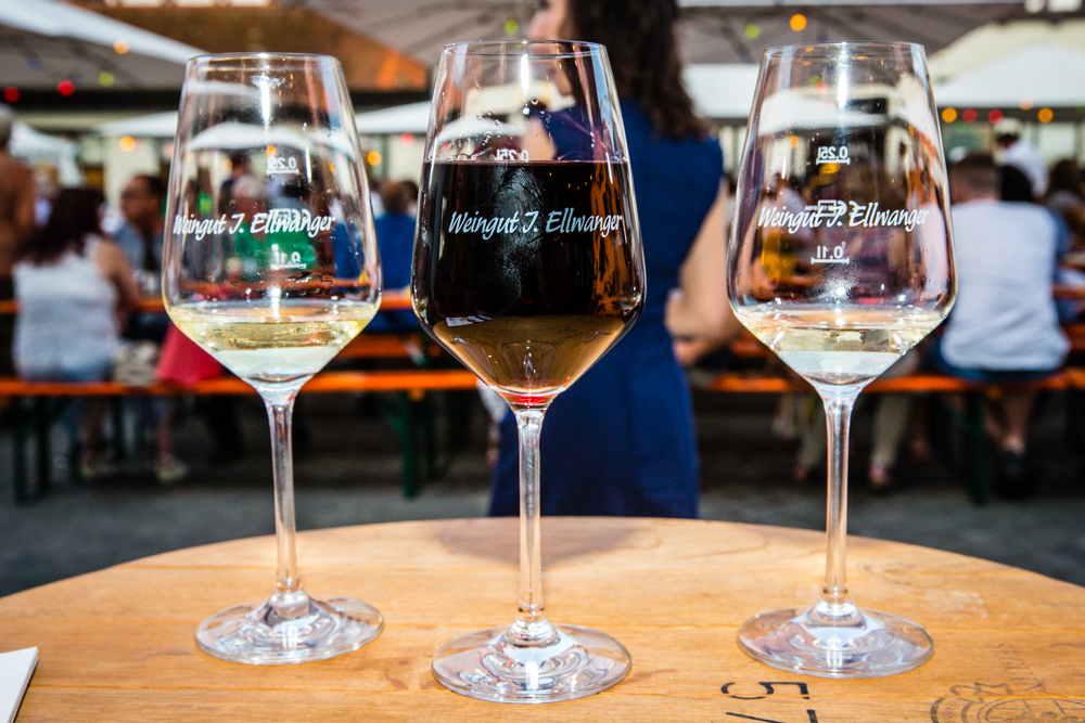 Die Wengerter sind also insgesamt zufrieden mit dem Wetter – bis auf einen kurzen, aber heftigen Gewitter-Regenguss am Sonntag blieb es trocken – und auch mit dem Besucherzuspruch. Genau richtig, meint Jörg Ellwanger. Vor allem am Freitag- und Samstagabend war viel los. Aber nicht zu viel, so dass sich kein Gedränge vor den Ständen bildete, so sei es am besten. „Uns ist es auch wichtig, dass wir mit den Leuten schwätzen können“, sagt Jörg Ellwanger.