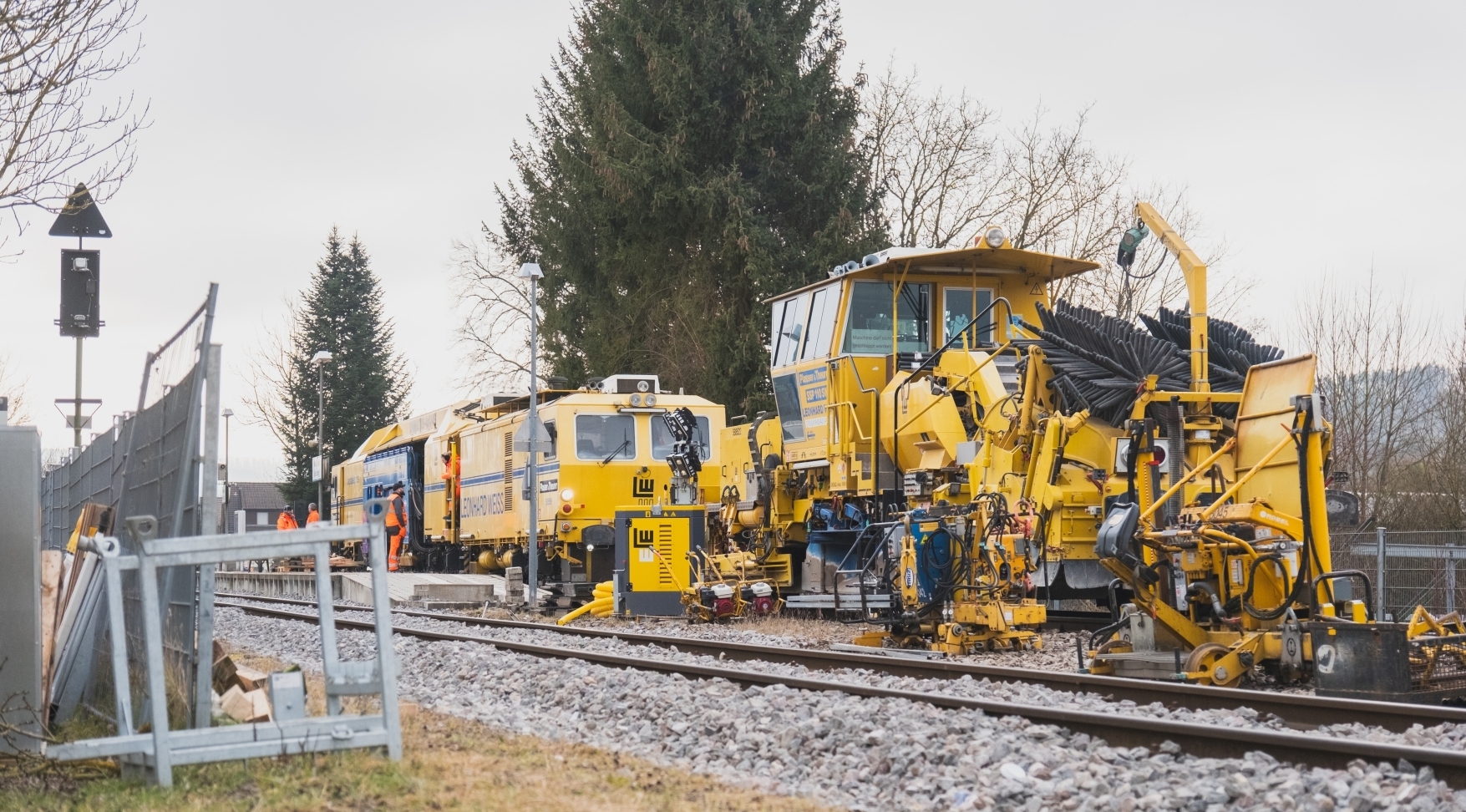 Es tut sich derzeit Sichtbares auf den Gleisen des beliebten Nahverkehrszugs: Eine Art gelber Bauzug, „Stopfmaschine“