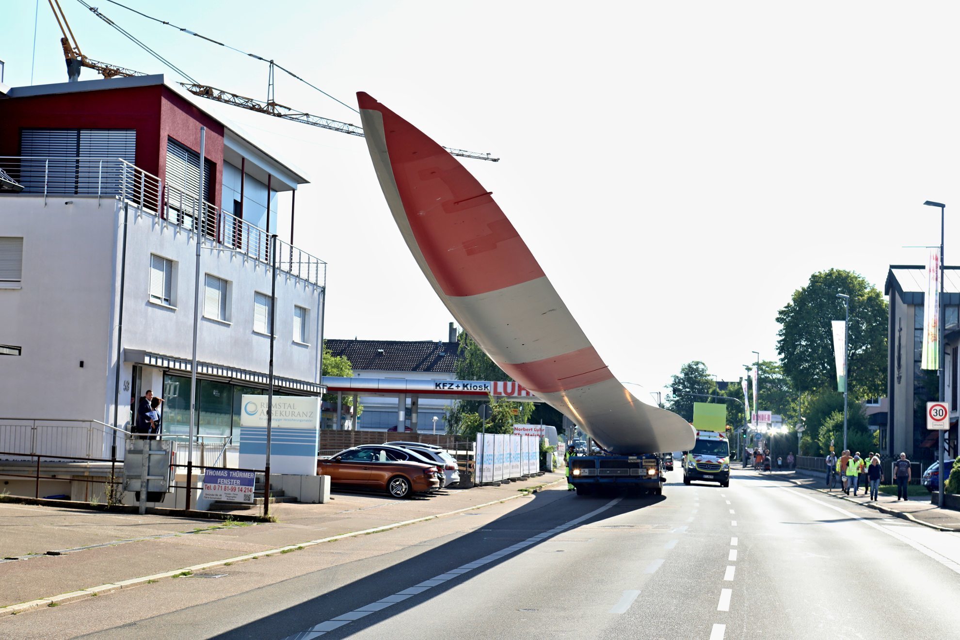 Der beschädigte Windradflügel soll laut EnBW vor Ort zerkleinert werden, es ist also kein erneuter Spezialtransport durch Schorndorf mit ferngesteuertem Selbstfahrer und Polizeibegleitung nötig wie am vergangenen Dienstag.