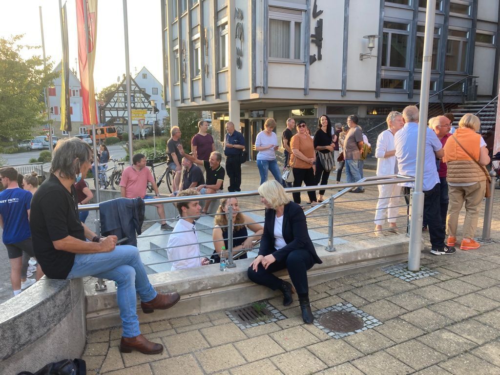 Im Sitzungssaal ist es mittlerweile ruhiger geworden. Die meisten Anwesenden stehen nun vor dem Schwaikheimer Rathaus. Dorthin werden die Zwischenergebnisse aus den Wahllokalen auch übertragen.