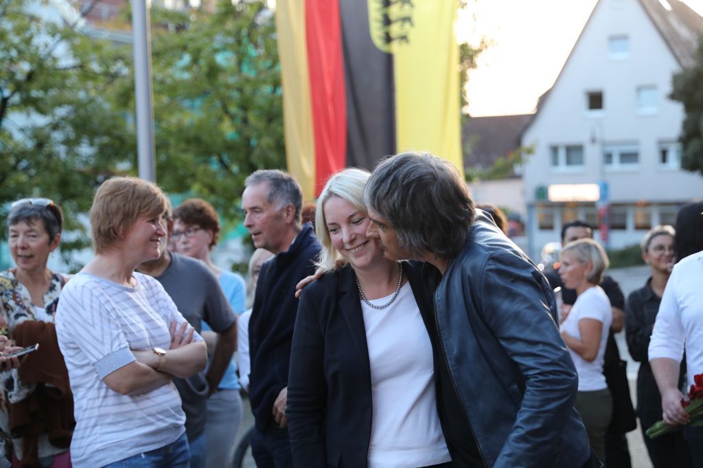 Soeben wird vor dem Rathaus das vorläufige Endergebnis verkündet. Mit 62,47 Prozent der Stimmen hat Astrid Loff die Bürgermeisterwahl in Schwaikheim gewonnen. Vor dem Rathaus wird applaudiert.