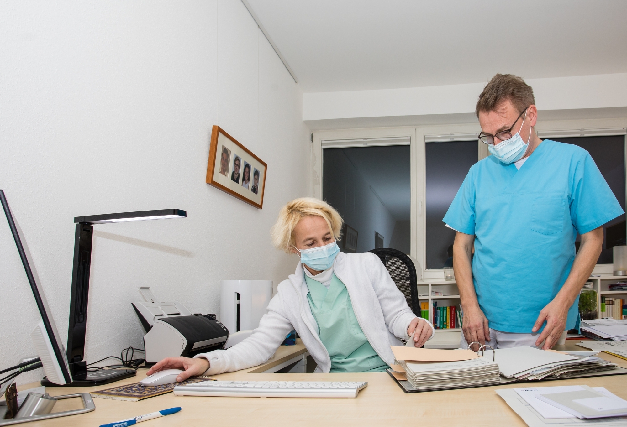 Die vergangenen Tage, Wochen und Monate haben Frank Röder und seinem Team viel abverlangt. Am Dienstagabend um 17.30 Uhr ist das Wartezimmer der Praxis noch immer ordentlich gefüllt. Und auch vor dem Eingang warten drei Personen. Trotzdem sind dem Arzt die Überstunden, die er täglich macht, kaum anzumerken. Hinter seiner OP-Maske und der Brille, die er trägt, ist immer wieder ein Lächeln zu erkennen. Röder ist trotz der Umstände geduldig, spricht langsam, aber bestimmt. „Frau Barth hat