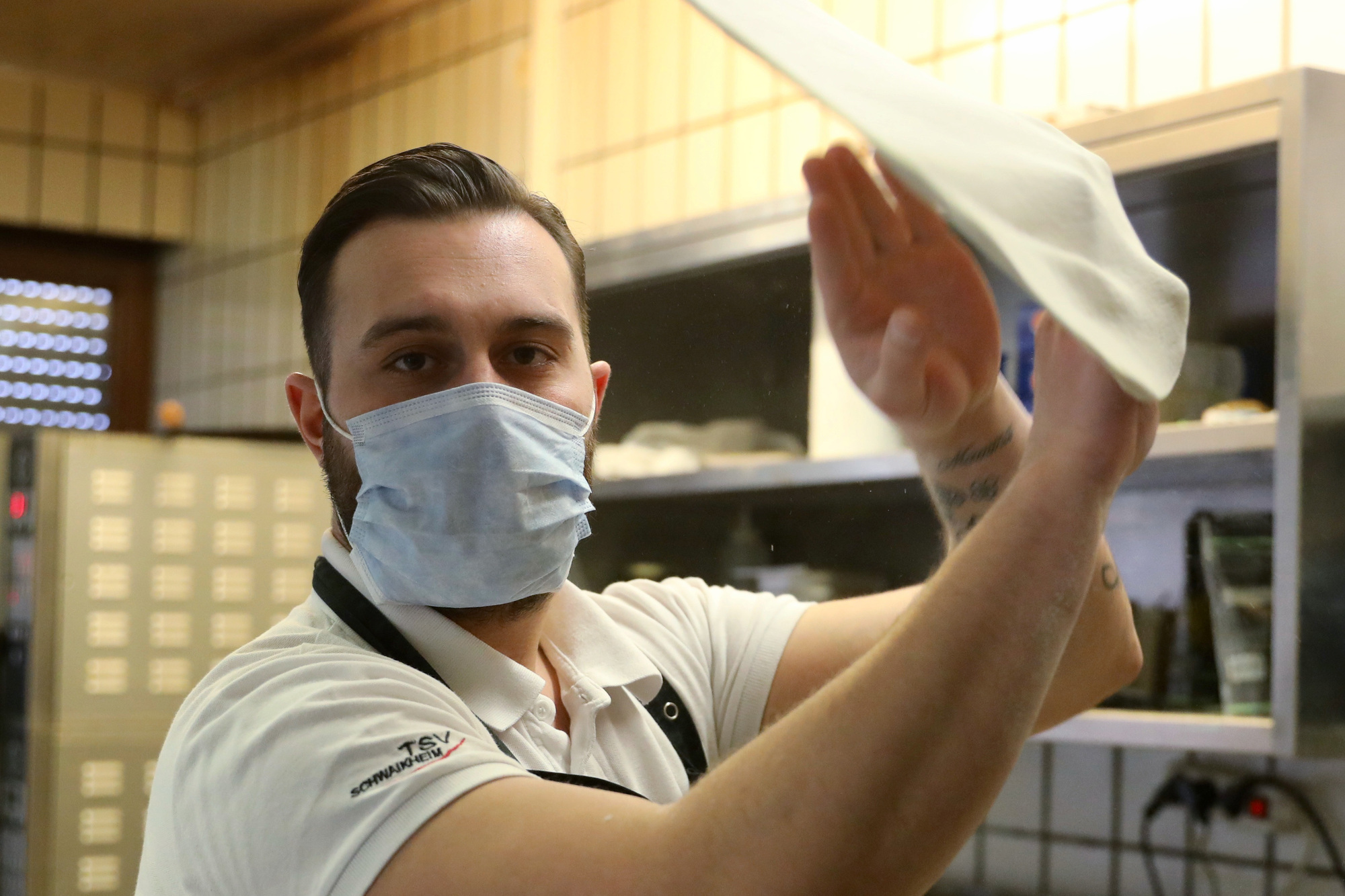 Anthoni Scorza ist der junge Chef der „Trattoria da Anthoni“ – und zugleich der Küchenchef. Momentan kommen aber nur wenig Gäste in den Genuss seiner „Showeinlage“ mit dem kreisenden Pizzateig, da 80 Prozent der Bestellungen über Lieferando ausgeliefert werden. Vier von fünf Bestellungen liefert der 25-Jährige seit dem ersten Lockdown über Lieferando aus. Wer Gastro machen will, komme nicht um diesen Lieferdienst herum, sagt der Italoschwabe. Was ihn so überzeugt an der Online-Plattform,