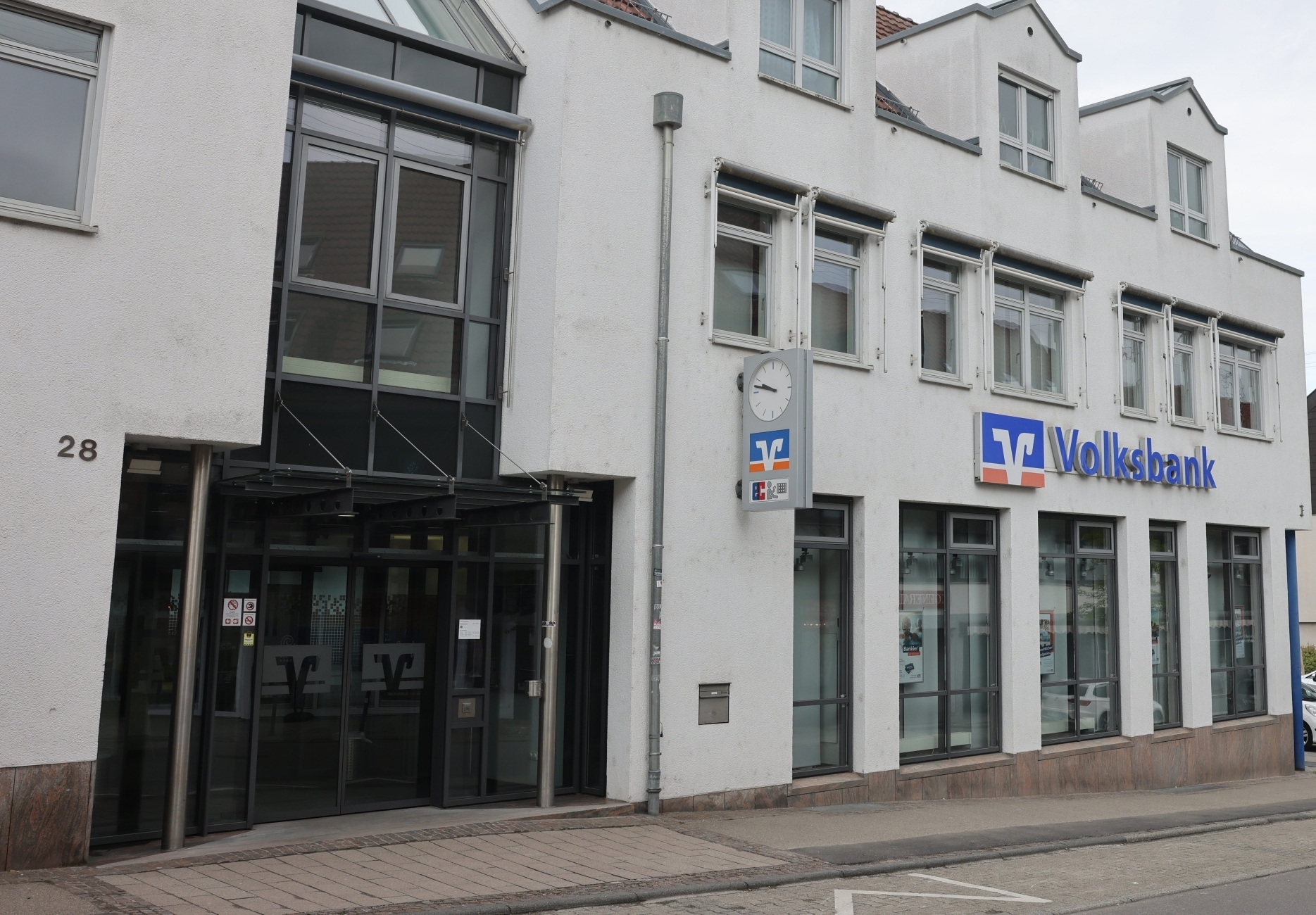 Die Volksbank Stuttgart baut ihre Filiale an der Bahnhofstraße in Schwaikheim um. Sie zieht in dem Gebäude, das ihr gehört, komplett ins Erdgeschoss, verringert und verlagert Beratungsräume, die bislang im Obergeschoss waren, dorthin. Das OG/DG wird so umgebaut, dass dort drei Mietwohnungen entstehen (42, 49 und 80 Quadratmeter). Aber auch das EG wird komplett neu gestaltet, erläutern Robert Haegelen, Bereichsleiter für Unternehmenskommunikation und Marketing, und Thomas Rösch, Prokurist und