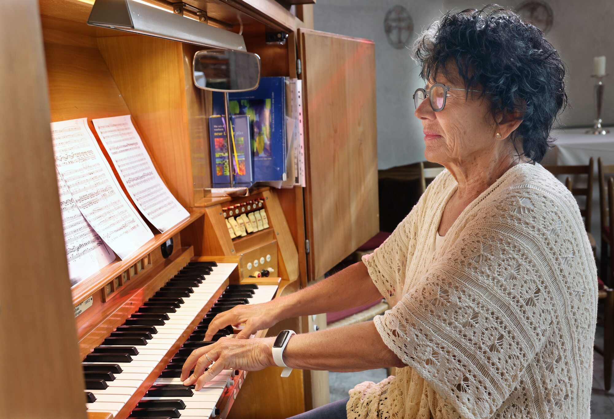 An der Orgel der Afrakirche in Urbach