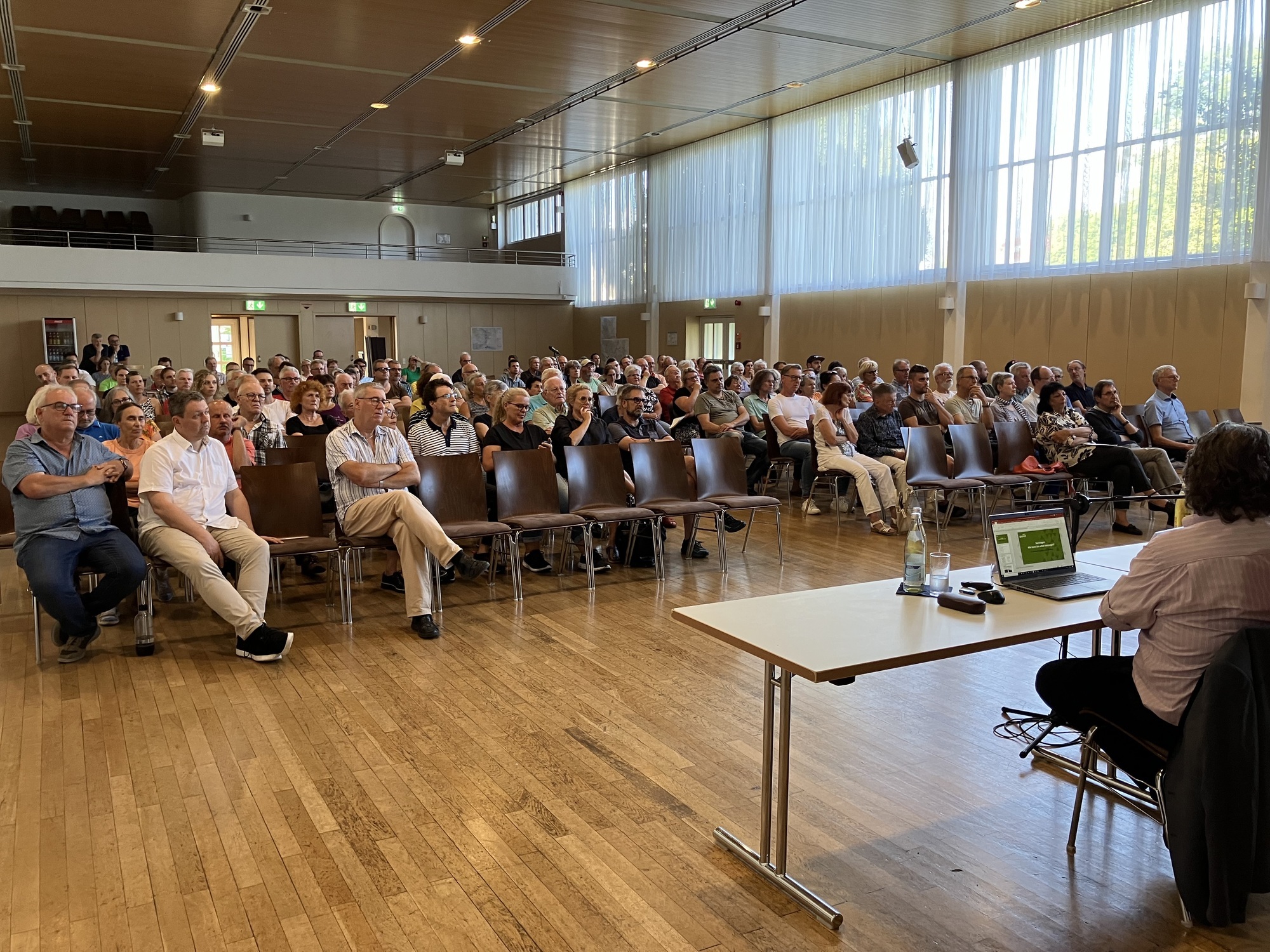 „Hätten wir diese Veranstaltung vor sechs Wochen gemacht, es wäre nur ein Bruchteil der Zuhörer gekommen“, so Landrat Dr. Richard Sigel bei einer Infoveranstaltung zu Gefahren durch Starkregen in Urbach. Doch nach den beiden Starkregenereignissen vom 2. und 26. Juni war das Interesse groß - wie kann ich mich und mein Eigenheim schützen, was unternimmt die Gemeinde, damit der nächste Starkregen nicht wieder so verheerende Auswirkungen hat?
