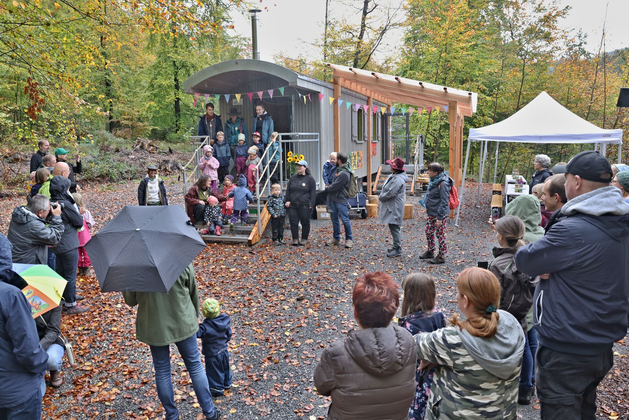 Am vergangenen Samstag wurde der neue Bauwagen des Urbacher Waldkindergartens, wo im September eine zweite Gruppe an den Start ging, offiziell eingeweiht. Bei der Feier informierten sich interessierte Familien bei Fachkräften darüber, wie sich die Kinder im Freien anziehen sollten, wo sie auf Toilette gehen können und was die Jungs und Mädels in der Natur unternehmen. „Das war gut“, sagt dazu Petra Poloczek-Bauknecht, Leiterin des Waldkindergartens, die auf alle diese Fragen eine Antwort
