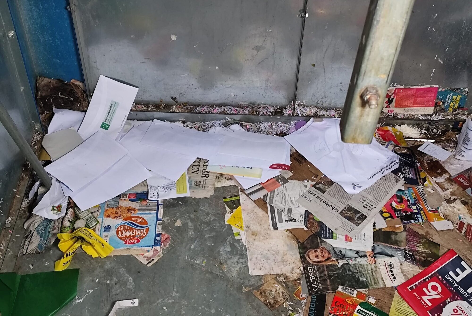 „Ich habe beobachtet, wie ein Postzusteller - unterwegs mit dem gelben Dienstfahrrad - ein Bündel Post/Briefe in ’unseren’ Altpapiercontainer geworfen hat“, so schreibt der