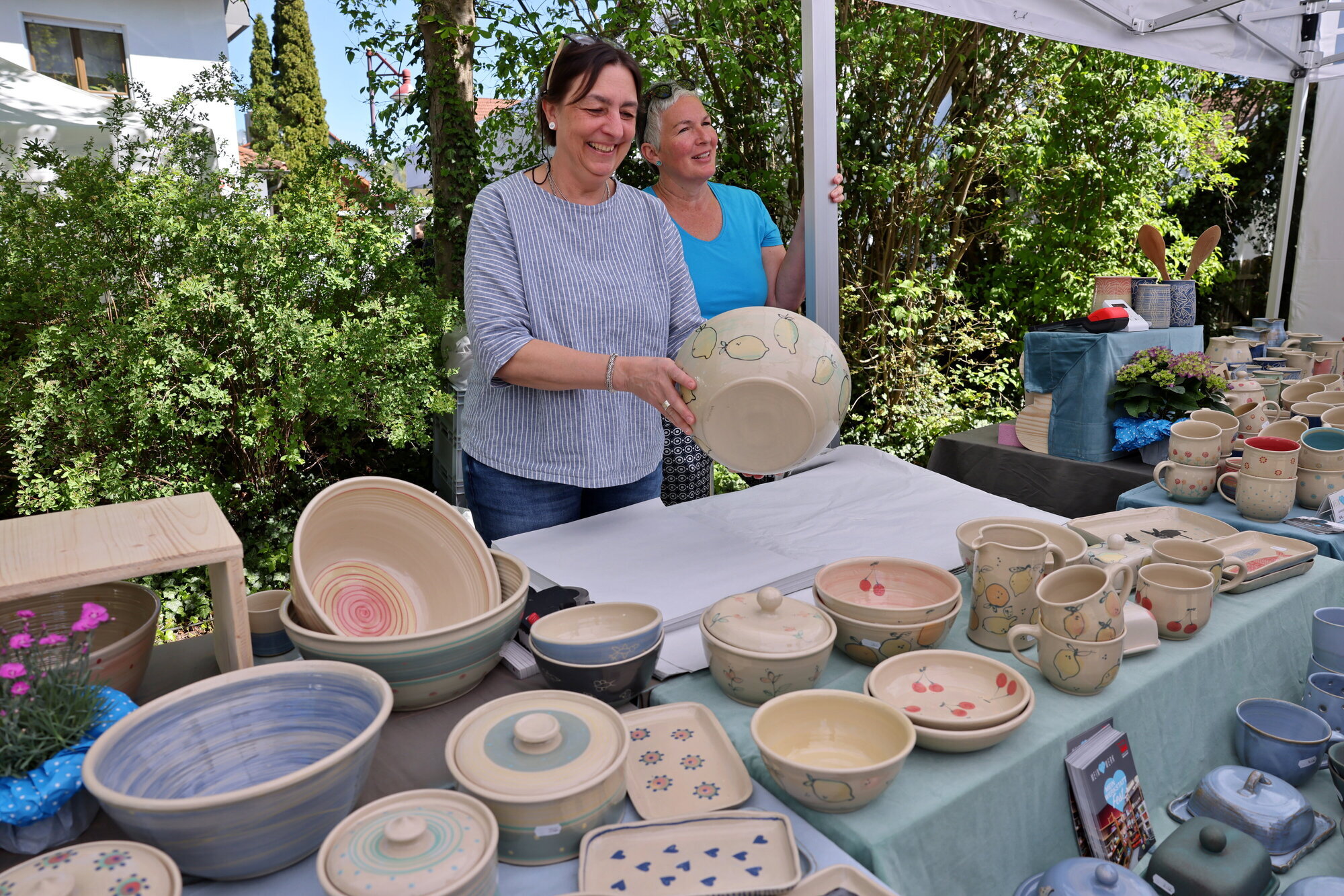 Urbach. Der April macht ja sprichwörtlich, was er will, und manchmal will er eben Gutes. Zum Beispiel frühlingshaftes bis frühsommerliches Wetter zum gesamten Töpfermarkt-Wochenende in Urbach. Dies und ein vielseitiges Angebot vor allem an Vasen und Schüsseln, aber auch weiterer Handarbeit, trugen zu guter Laune bei dieser 35. Ausgabe des Marktes bei. Anbieter und Besucher trafen an fast 100 Ständen, Themen, Gewerken, Kunststationen und Essensangeboten aufeinander, genossen