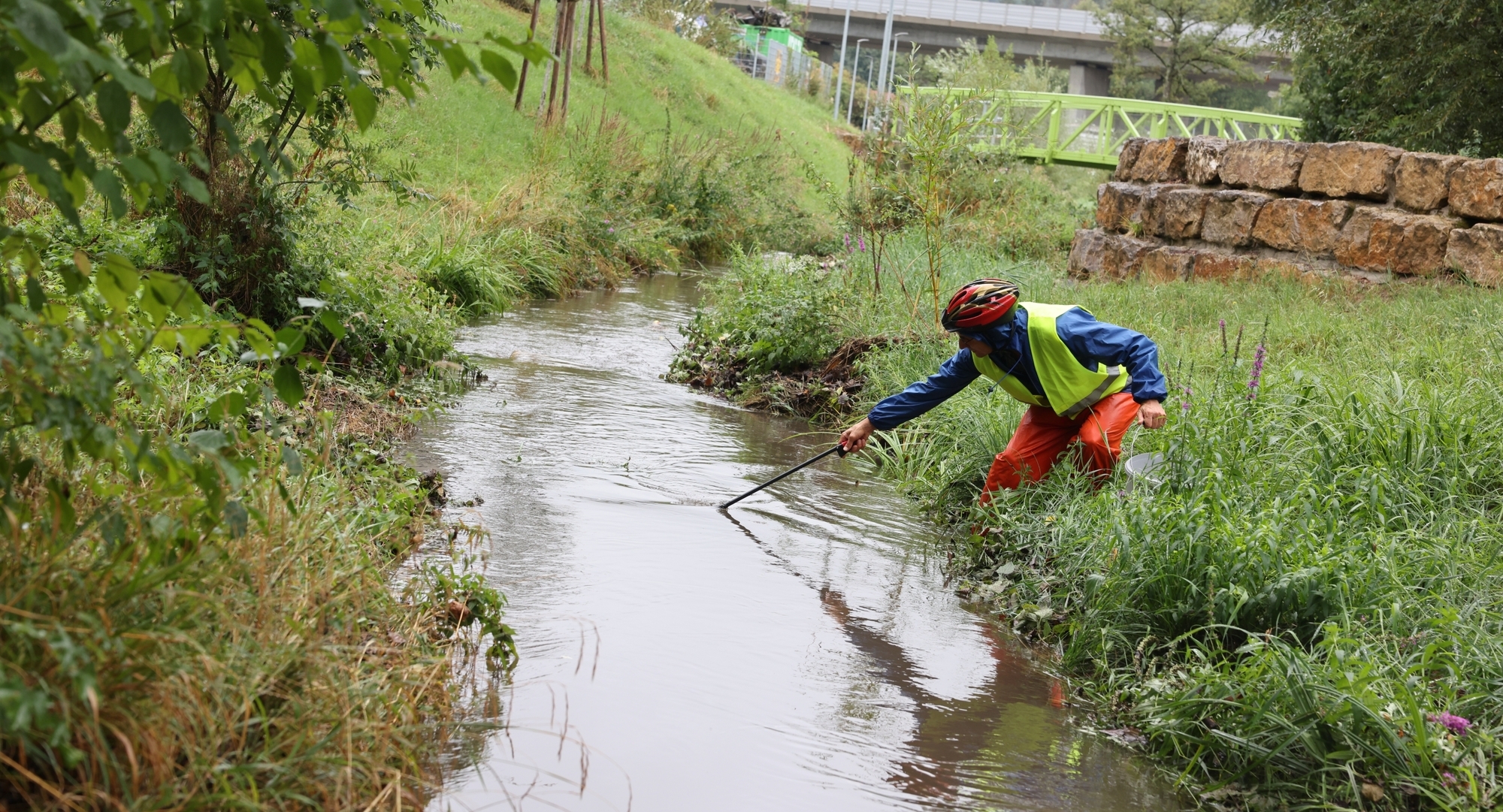 Es schüttet wie aus Eimern. Und es schüttet in die Eimer der Müllsammler, die sich nicht vom Wetter abhalten lassen. Zwischen dem mit Zangen aufgeklaubten und aufgeweichten Unrat bilden sich kleine Pfützen am Eimerboden. Die „Ausbeute“ sind die „üblichen Verdächtigen“: Kippen, Eisbecher, Plastikteile, Papier und Verpackungsmüll. Matthias Görtler weist auf ein weiteres Problem hin: Hygienetücher.
