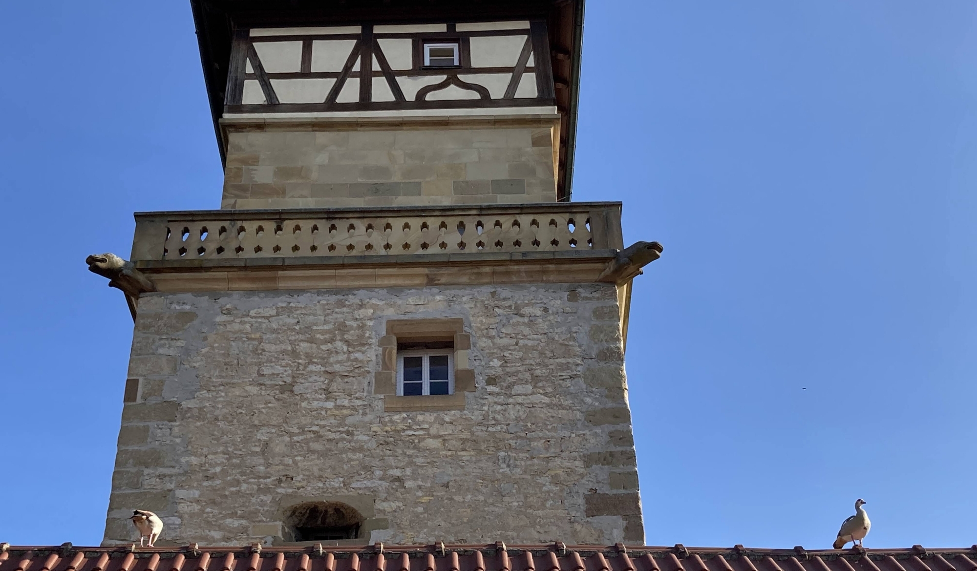 Nilgänse sorgen in Waiblingen nicht nur im Talauepark hin und wieder für Ärger, indem sie dort ihren Kot etwa auf Sitzbänken hinterlassen. Auch an einem der Wahrzeichen, dem Hochwachtturm, halten sie sich offensichtlich gerne auf. Ein Anwohner klagt über Lärm am frühen Morgen. Am Turm selbst und auf umliegenden Dächern lassen sich die Vögel, die in der EU als invasive Art eingestuft sind, dem Waiblinger zufolge seit Jahren nieder. In diesem Frühjahr „fanden von Februar bis Anfang Mai