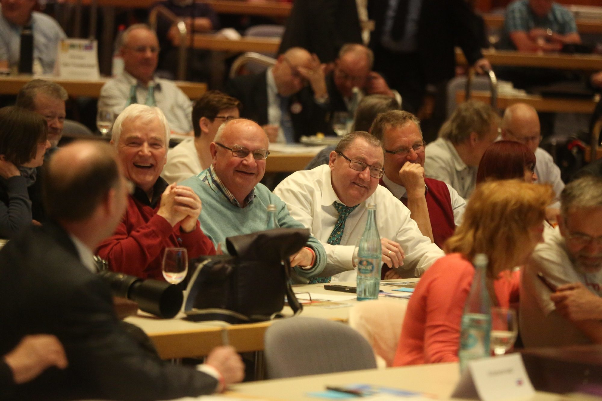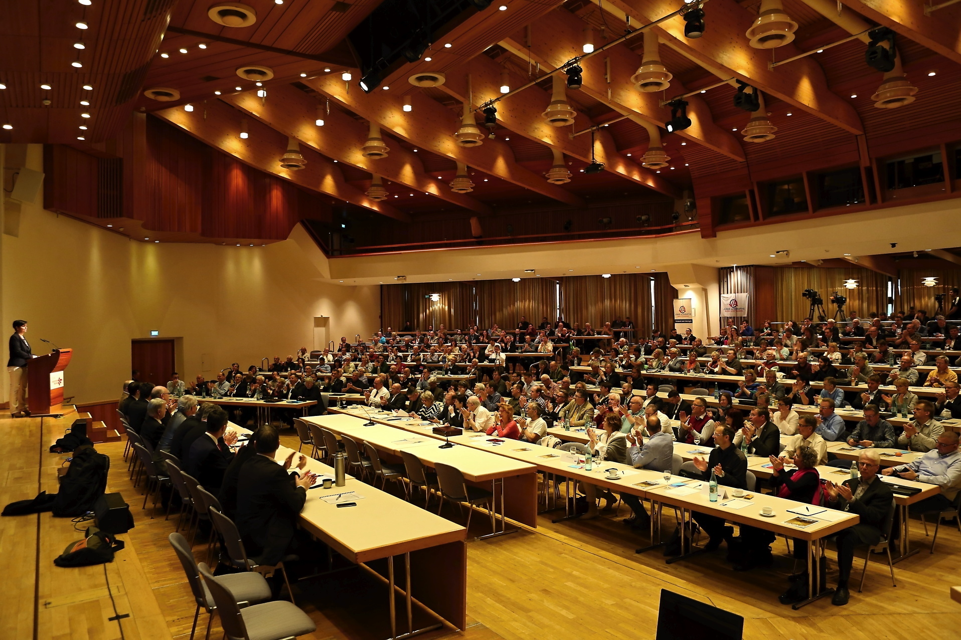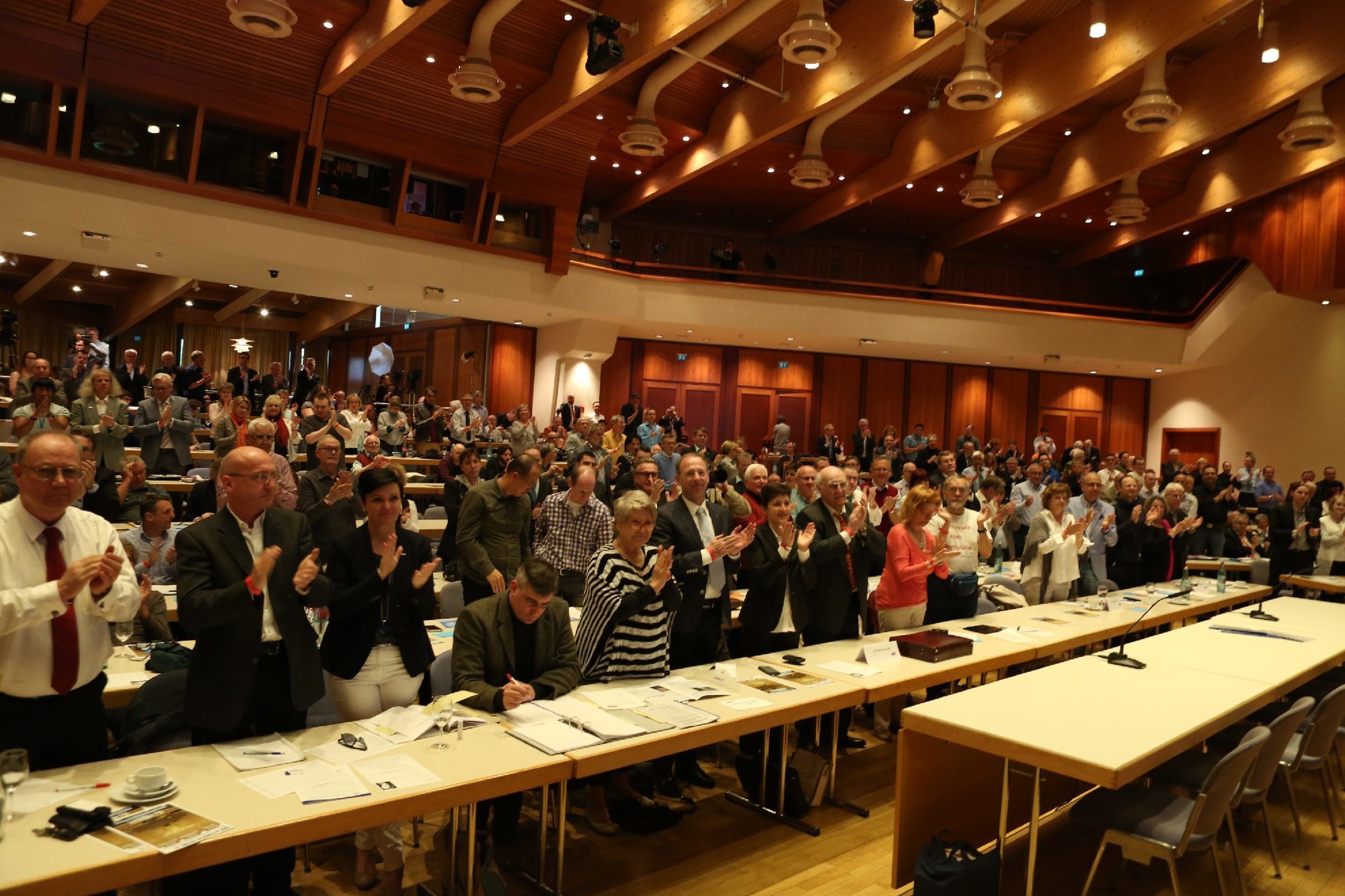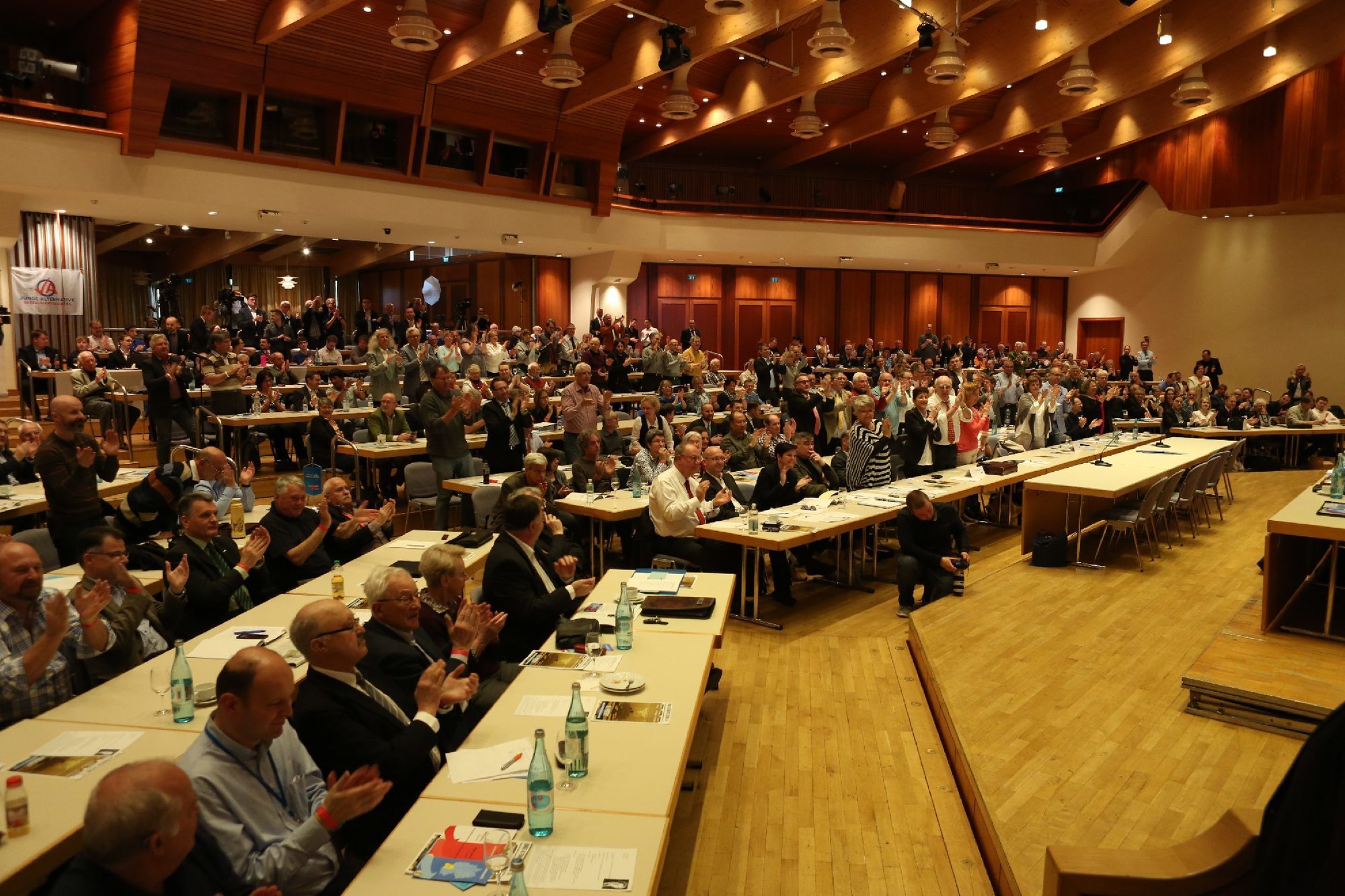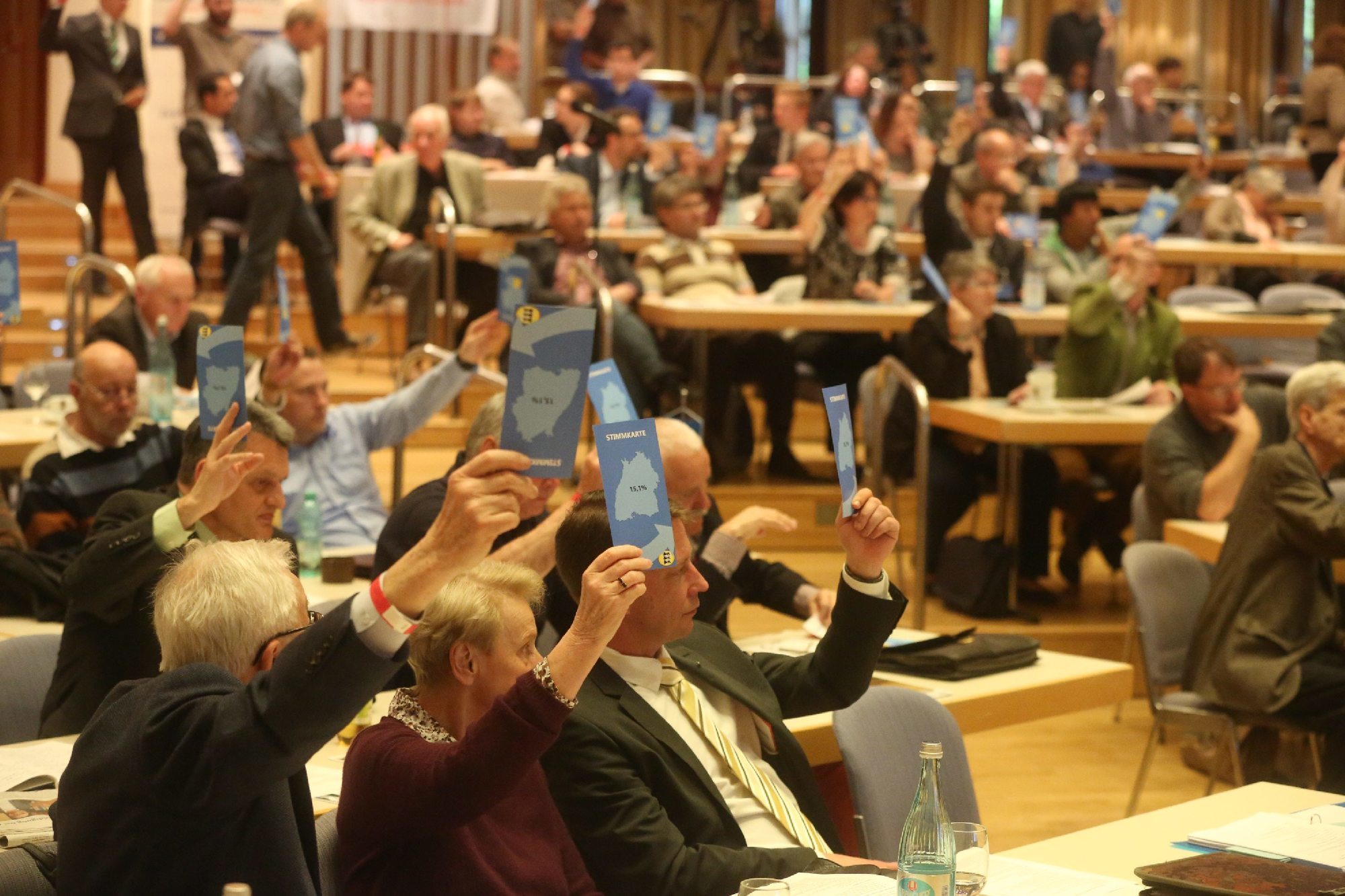 Im Saal tagen derweil rund 300 Mitglieder der AfD, darunter auch die 23 künftigen Landtagsabgeordneten. Wer in den Saal will, muss sich peniblen Kontrollen von Polizei und Security unterziehen lassen. Von dem Protest zeigen sich die Delegierten der AfD jedoch ungerührt. Sie scheinen ihn fast zu genießen. Die Stimmung im Saal ist entsprechend entspannt. Die Zufriedenheit über die 15,1 Prozent bei den Landtagswahlen ist den AfD-Mitgliedern noch deutlich anzusehen. Der Kreisvorsitzende Ralf Özkara jedenfalls meint selbstbewusst: "Wir sind die neue Volkspartei."