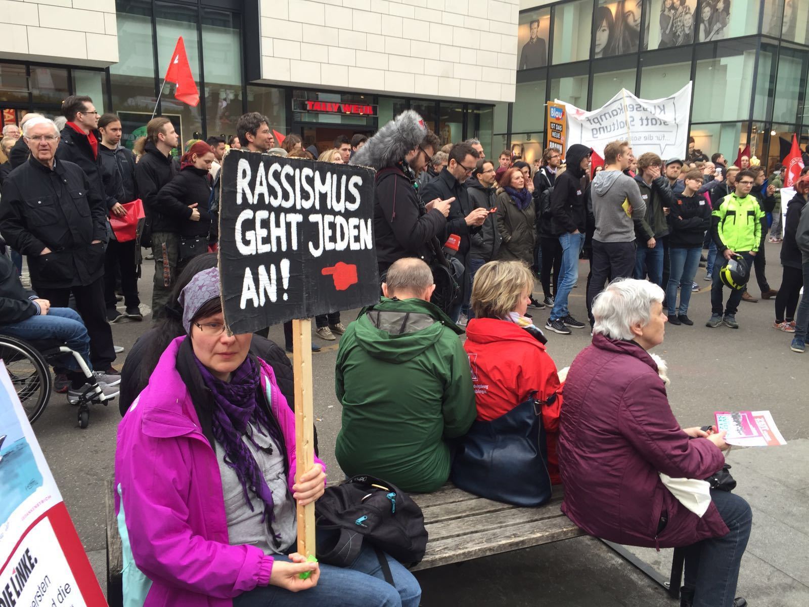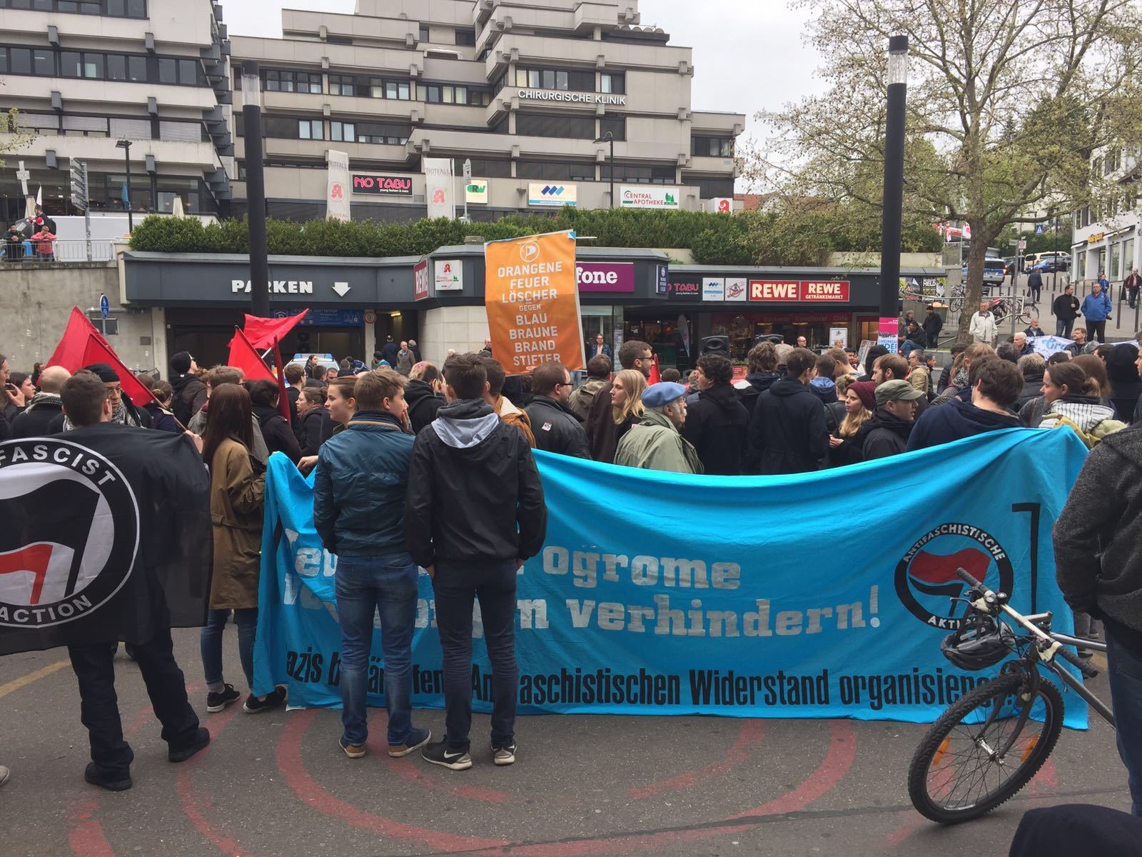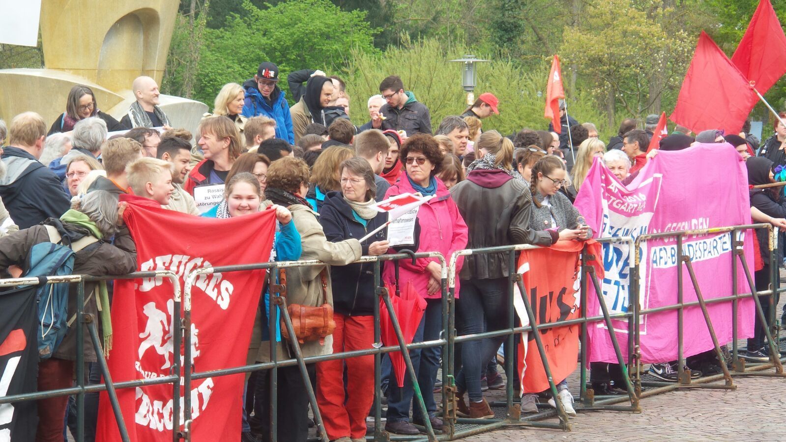 Ein breites Bündnis von rund 20 Gruppen hatte im Vorfeld zum Protest gegen den Landesparteitag aufgerufen: darunter die Alternative Liste Waiblingen, Amnesty International, die antifaschistische Jugend im Kreis, lokale DGB-Gruppen, der Verein Fremde unter uns, die IG Metall Waiblingen sowie die Piratenpartei Rems-Murr. Gefolgt sind dem Aufruf vor allem viele recht junge Menschen.