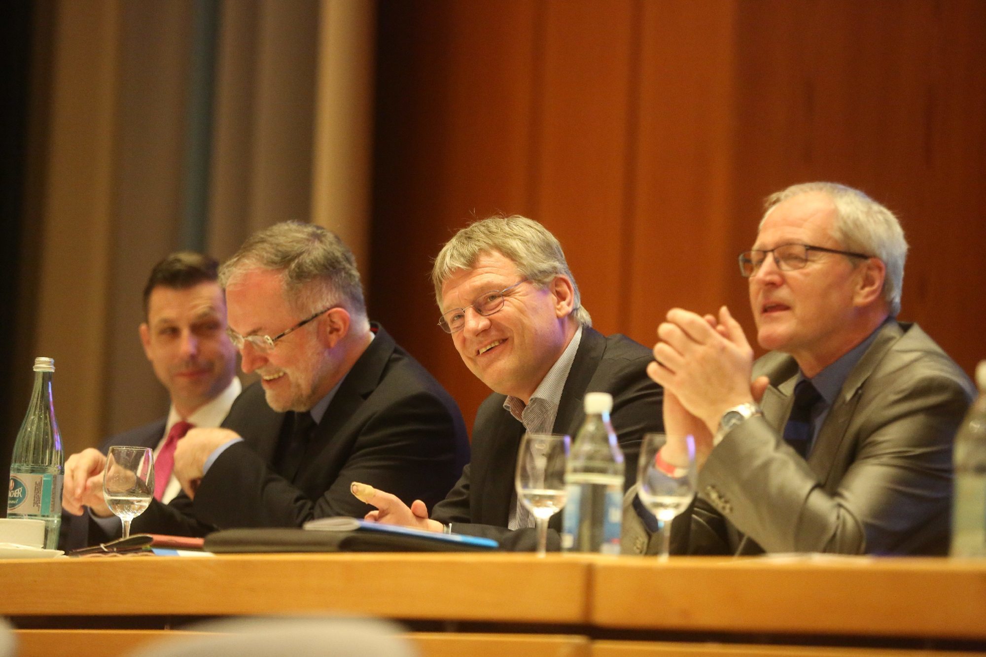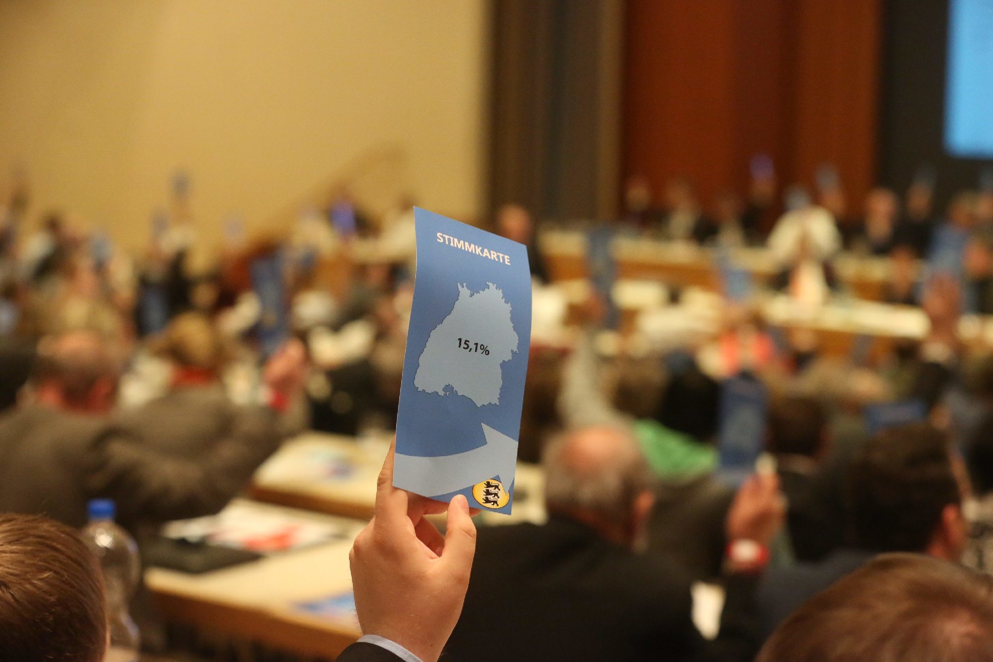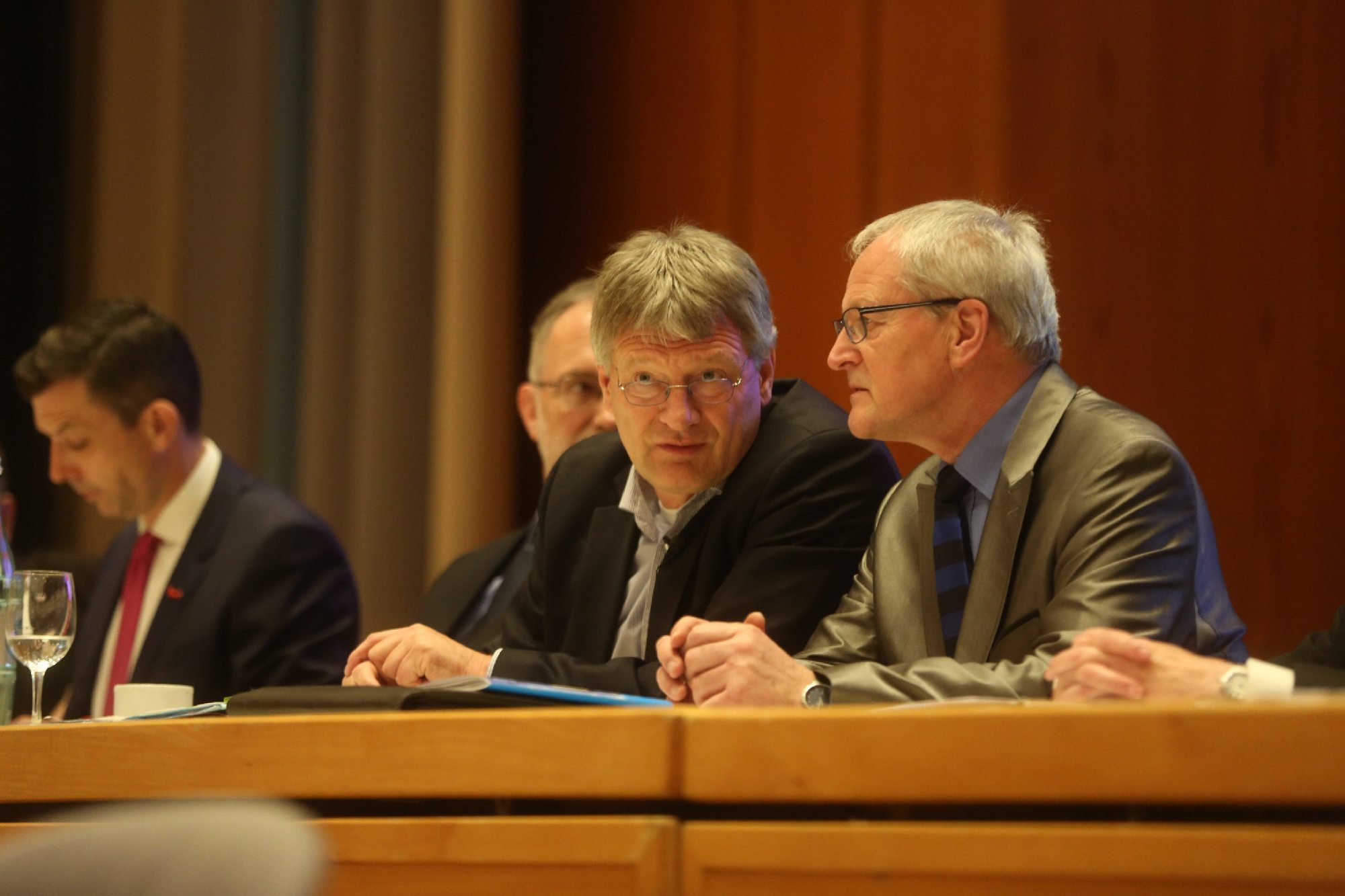 Auch Fraktions- und Parteichef Jörg Meuthen bekräftigt in seiner Grundsatzrede zur Landtagsarbeit den Anspruch der AfD, Volkspartei zu sein. Und nennt 30 Prozent der Wählerstimmen als mittelfristiges Ziel. Zunächst einmal dürfe man die Hoffnungen der Wähler nicht enttäuschen. Das hieße aber auch: "Wir dürfen uns nicht in die Riege der Kartell-Parteien einreihen", sagt Meuthen. Kommt es zu einer grün-schwarzen Landesregierung, so wäre der 54-Jährige Oppositionsführer.