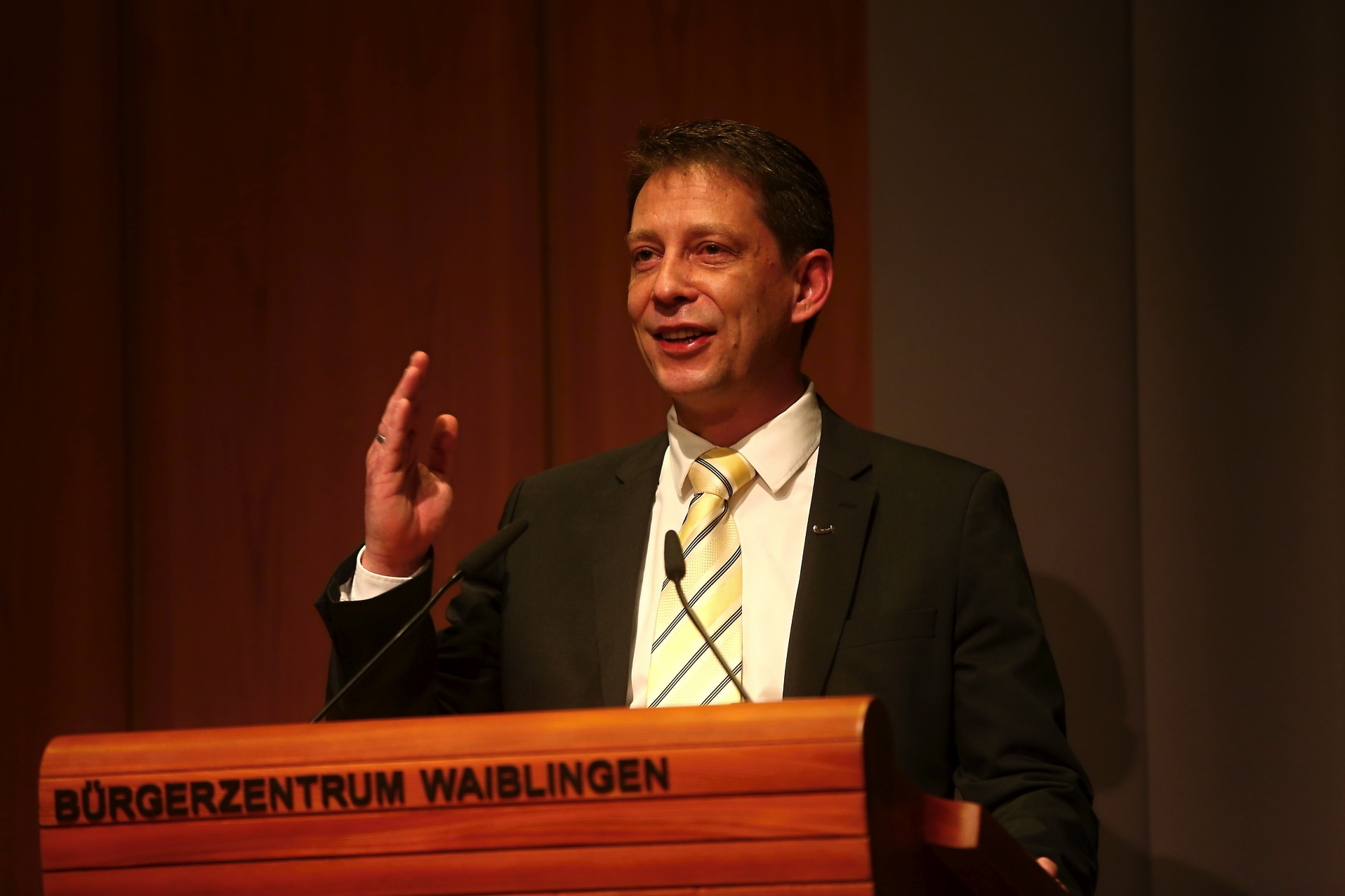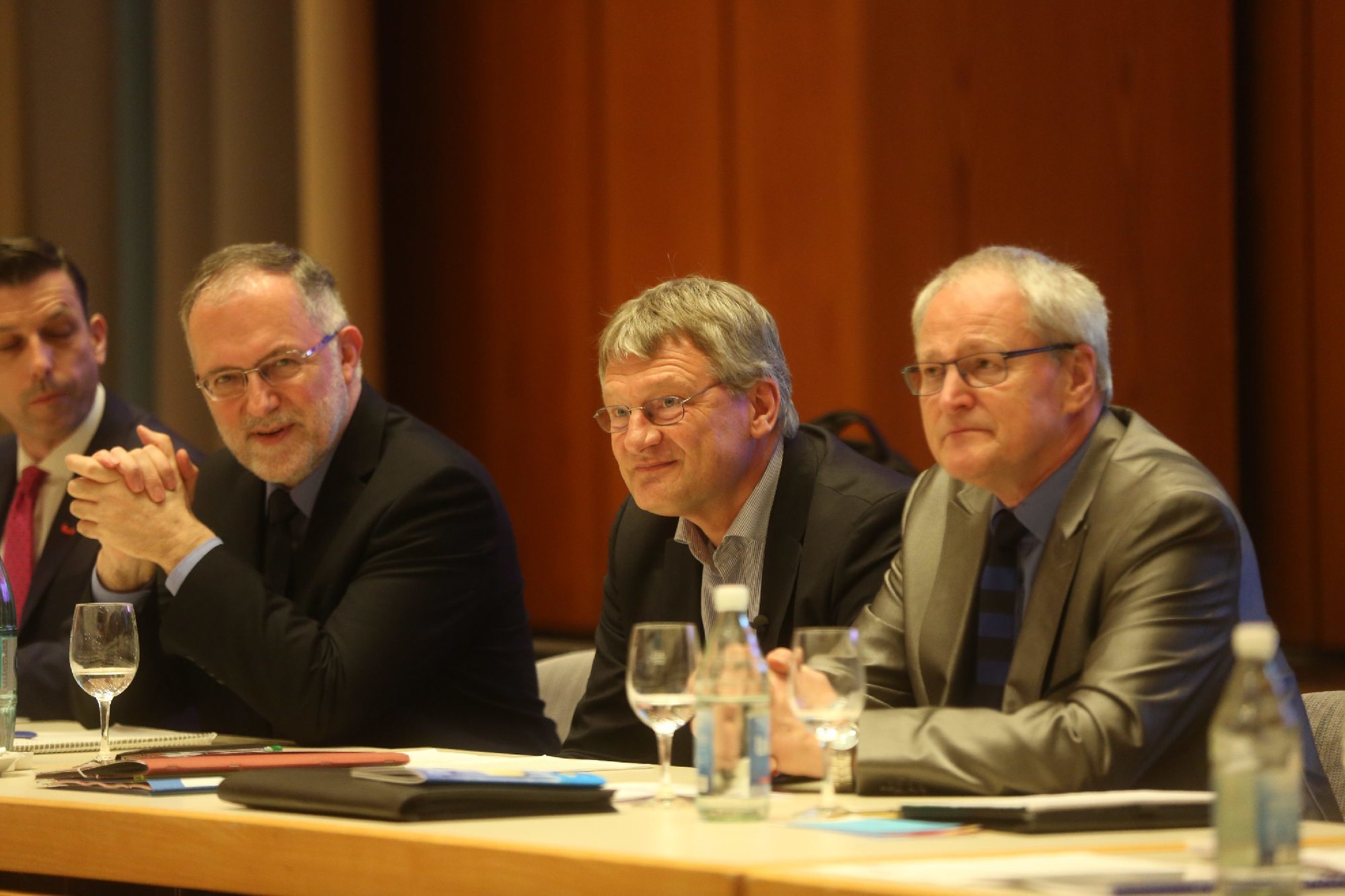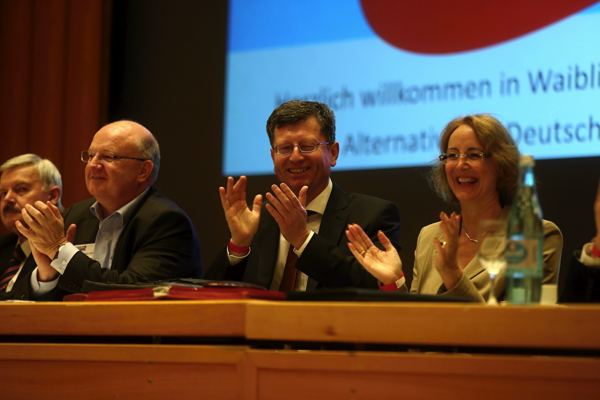 Auch Fraktions- und Parteichef Jörg Meuthen bekräftigt in seiner Grundsatzrede zur Landtagsarbeit den Anspruch der AfD, Volkspartei zu sein. Und nennt 30 Prozent der Wählerstimmen als mittelfristiges Ziel. Zunächst einmal dürfe man die Hoffnungen der Wähler nicht enttäuschen. Das hieße aber auch: "Wir dürfen uns nicht in die Riege der Kartell-Parteien einreihen", sagt Meuthen. Kommt es zu einer grün-schwarzen Landesregierung, so wäre der 54-Jährige Oppositionsführer.
