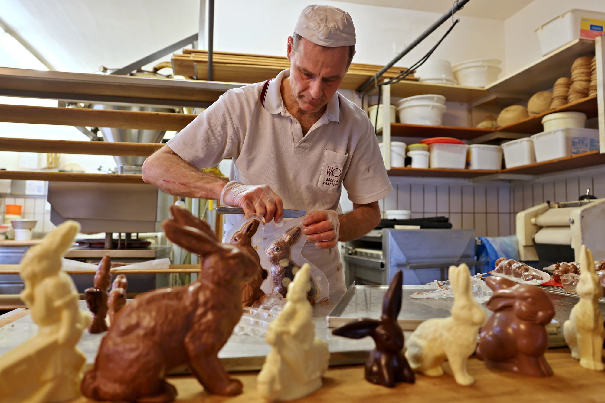 Waiblingen. Eine ganz besondere Sorte von Langohren versteckt sich am Rande der Waiblinger Innenstadt. Sie sind zum Anbeißen - ähnlich wie jene Hasen, die bereits in den Supermärkten Platz genommen haben. Doch im Gegensatz zu diesen ist jeder von ihnen ein handgefertigtes Unikat. Und wenn man Bäckermeister Andreas Wolf glauben mag, ist diese Art des Schoko-Osterhasen sogar vom Aussterben bedroht.