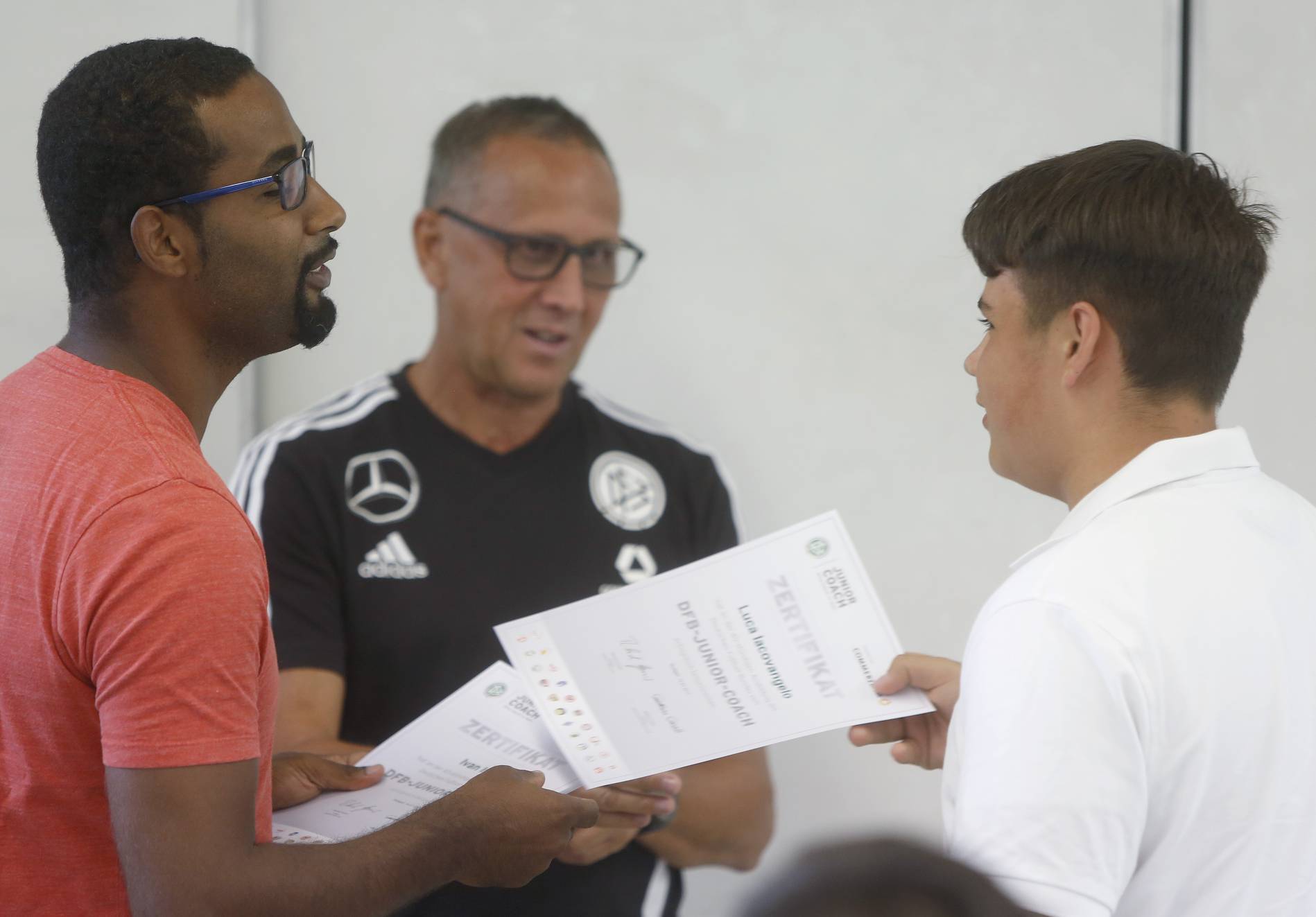 Cacau überreicht Zertifikate an Nachwuchs-Trainer