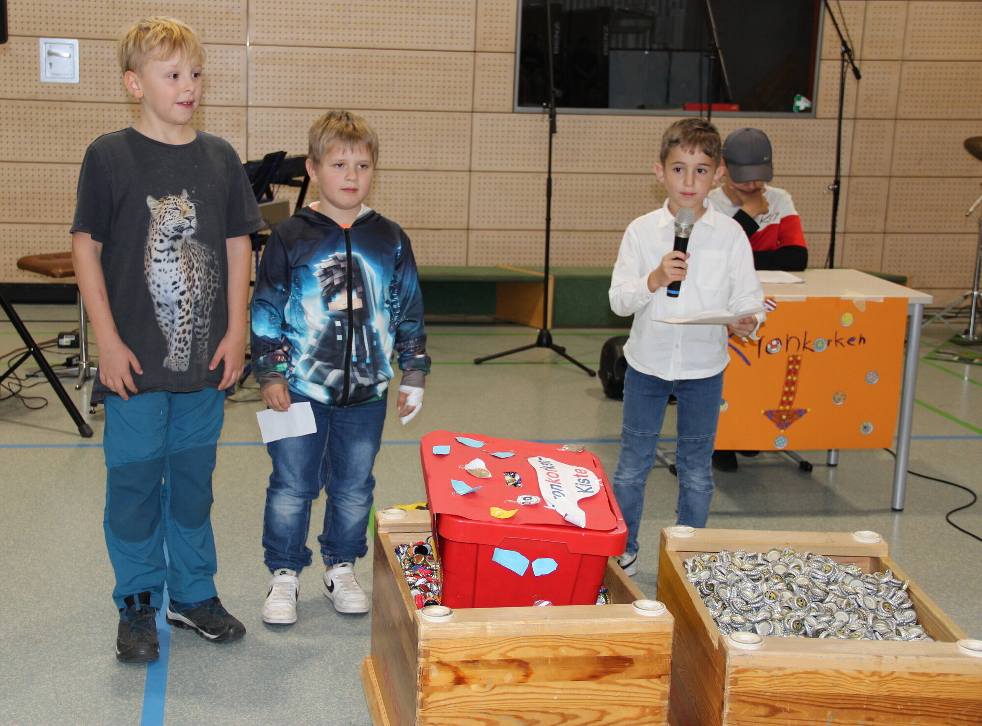 Waiblingen. Schüler und Lehrer der Christian-Morgenstern-Schule klatschen begeistert in die Hände, als sie das Ergebnis ihrer zweiwöchigen Sammelaktion sehen: Tüten, Kisten, Schachteln gefüllt mit Kronkorken. Nach und nach werden sie in zwei umgedrehte Kästen geschüttet, die zuvor auf Rollbrettern in die Mitte der Turnhalle gezogen wurden. An diesem Vormittag feiert die Schule ihren letzten Schultag vor den Ferien. Die Kronkorken werden zunächst an ein Weinstädter
