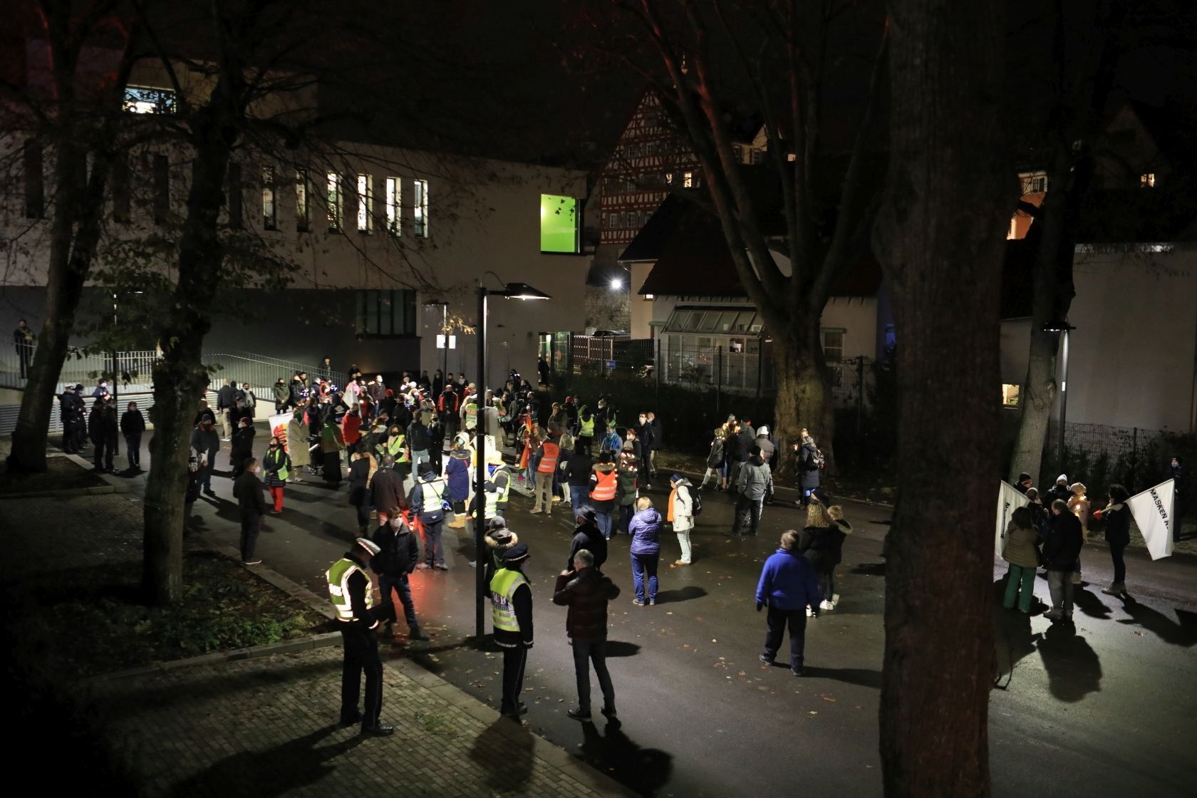 Mehr als 100 Gegner der Corona-Maßnahmen haben am Montagabend, 14. Dezember, in Waiblingen demonstriert – und damit deutlich weniger als erwartet. Zwei große Fragen gab es: Werden sich die Gegner der Corona-Maßnahmen an die von 20 Uhr an geltende Ausgangssperre halten und rechtzeitig ihre Kundgebung beenden? Und wird es zu Zusammenstößen mit den linken Gegendemonstranten kommen?