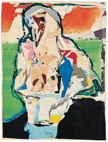Dann ging es an die Arbeit. Jorn feuchtete die von den Plakatwänden abgeschnittenen oder abgerissenen Papierbatzen im Atelier an, um den Kleister zu lösen. Anschließend riss er größere und dickere Fetzen ab, löste einzelne Schichten vorsichtig voneinander und zupfte Papierstückchen ab. Der Ausschuss sei nicht unerheblich gewesen, berichten Beobachter. Etwa seine Frau zu damaliger Zeit, ab 1960. Und was dann geschah mit den farbigen Fitzeln und halben Tapeten, das kommt wieder dem nahe, womit sich der Däne acht Jahre zuvor in einer intensiven Phase beschäftigte: dem aufbauenden Verfahren, der Collage. Eben auch die Décollage, das Abreißen, bedurfte nach Jorns Ansicht hernach des Zusammenstückelns, neu Montierens, auch mal Übermalens und Kommentierens mit Pinsel oder Kohle in einer späten Phase. Collage, Décollage, das ist gar nicht genau zu trennen, sagt auch Silke Schuck.