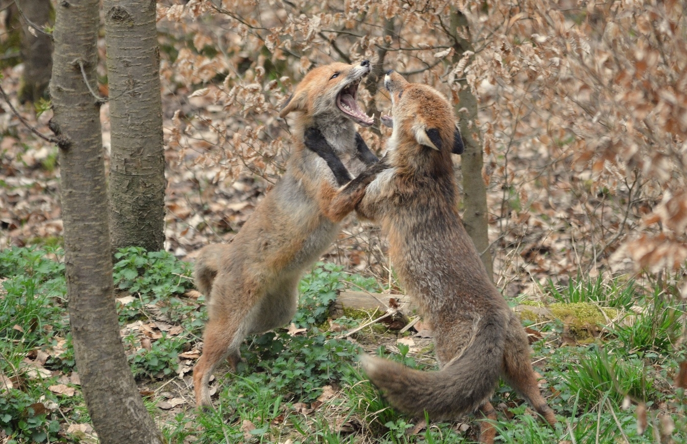 Waiblingen-Bittenfeld. Weit aufgerissene Mäuler, messerscharfe Zähne. Zwei Jungfüchse beim sportlichen Wettkampf im Bittenfelder Wald, dieser außergewöhnliche Schnappschuss ist Zeitungsleser Peter Fischer geglückt. Ein seltenes Bild – auch deshalb, weil unter den Füchsen in der Region zunehmend das Staupe-Virus grassiert.