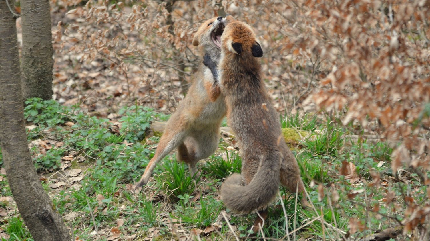 Revierförster Andreas Münz deutet den Tanz der Füchse als harmloses Kräftemessen, wie es unter Jungtieren üblich ist. Verletzt haben sich die Kämpfer dabei nicht.