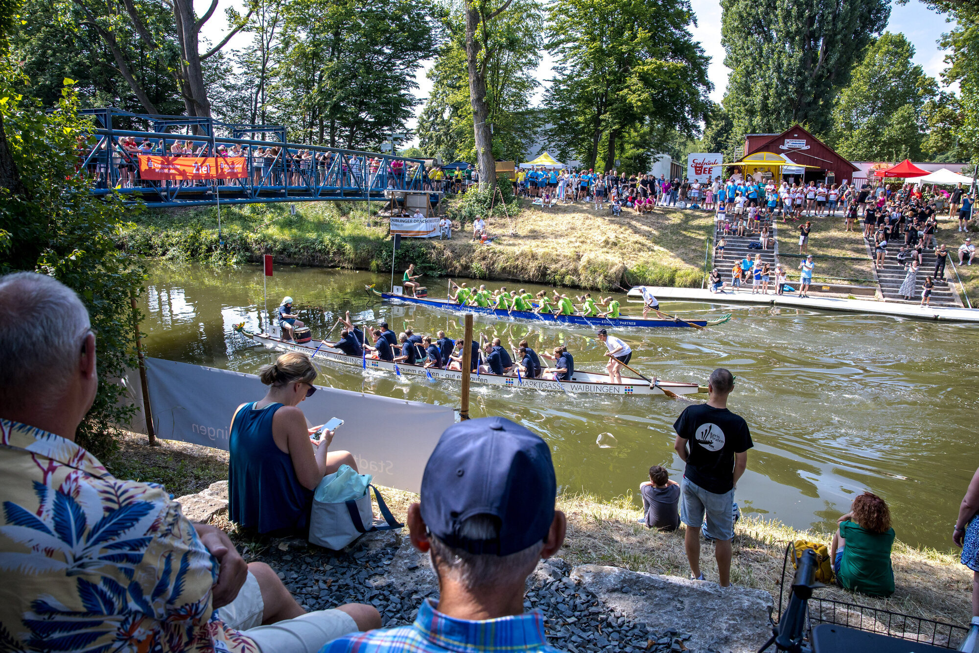 Waiblingen. Bei perfekten Wetterbedingungen fand der Drachenbootcup der Waiblinger Rudergesellschaft Ghibellinia auf der Rems statt. 32 Mannschaften gingen diesmal an den Start. Drei mehr als 2024. Ein sportlicher Wettbewerb, den es nun seit rund 20 Jahren gibt und zu dem Firmen-Mannschaften von Stihl bis Kärcher, Freundeskreise oder Schul-Ehemalige antreten.