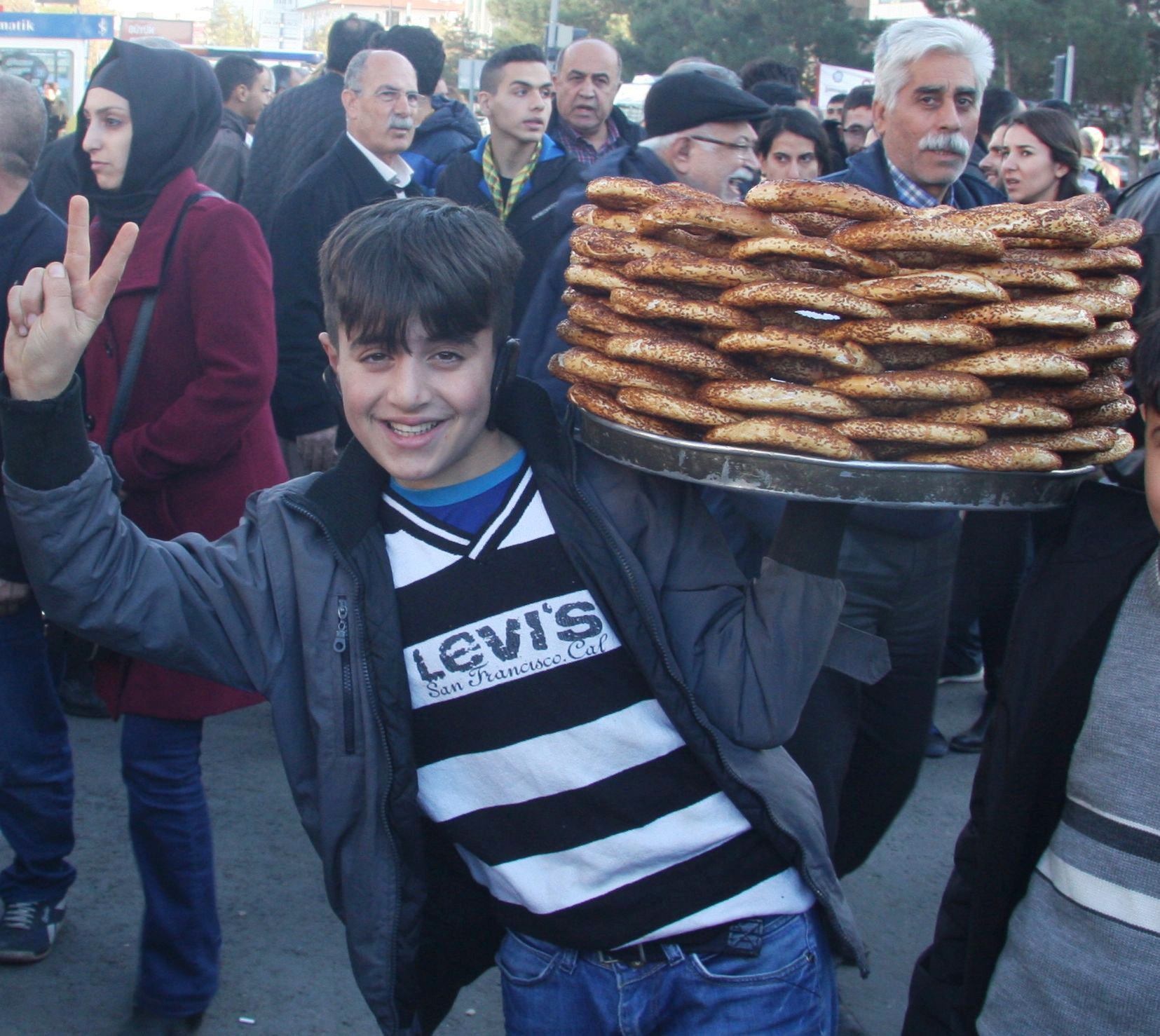 Hoffnungszeichen vom jungen Sesamkringel-Verkäufer während der Demo. © Mathias Ellwanger