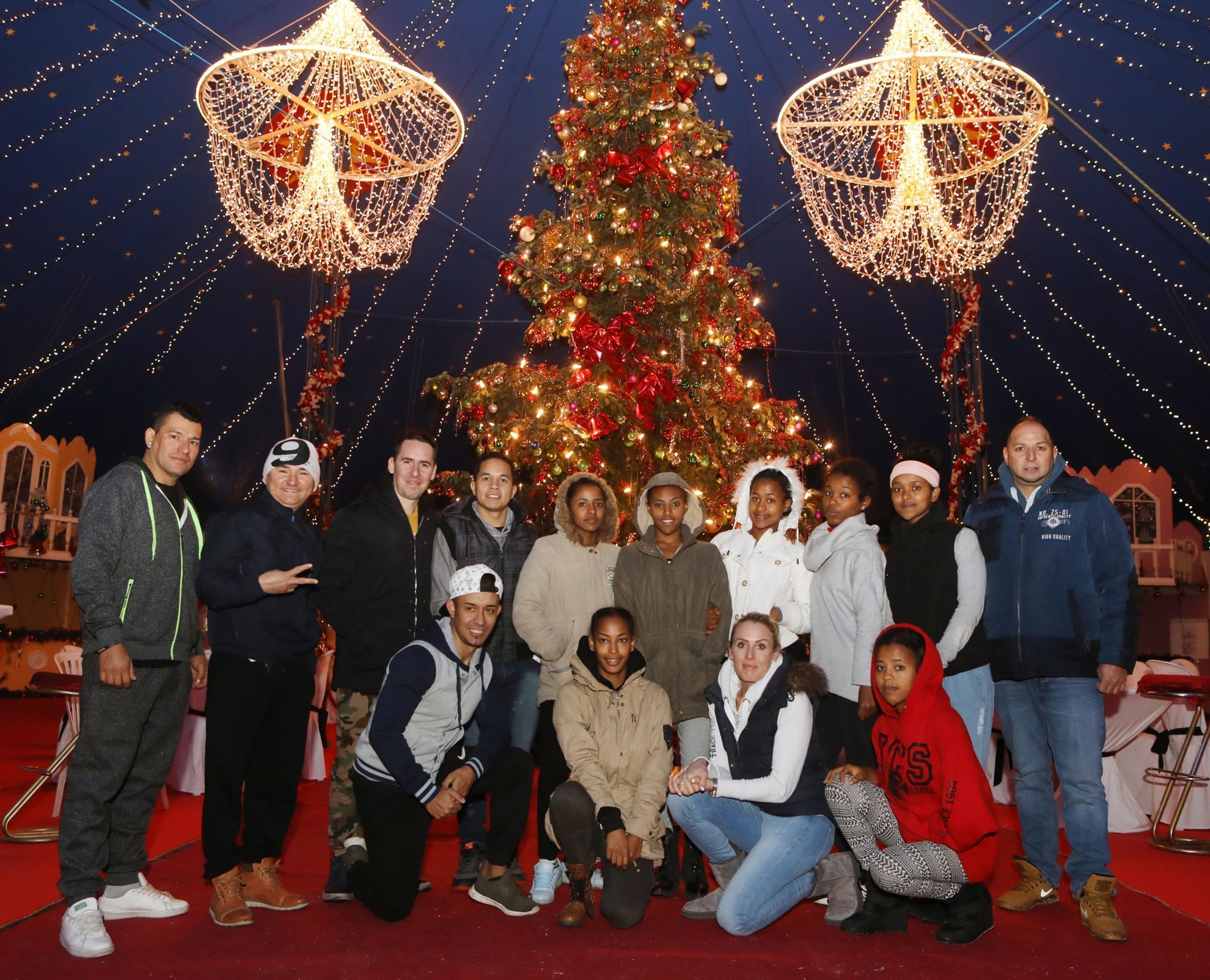 Statt für sich in den Wohnwagen feiern an Heiligabend alle Familienmitglieder und Artisten gemeinsam im Gastro-Zelt, wo der rund sechs Meter hohe Weihnachtsbaum steht, den vor der Vorstellung oder in den Pausen alle bestaunen. Jeder kocht und backt und steuert etwas bei zum großen Buffet: Ente mit Knödeln und Rotkohl, Kartoffelsalat mit Fisch, italienische Spezialitäten und allerlei Süßspeisen. Besinnlich geht es zu bei dezenter Weihnachtsmusik, während an Silvester eine fette Party mit Salsa, Merengue und Feuerwerk steigt. Zur Bescherung gibt meistens einer aus der Festgesellschaft den Weihnachtsmann, der die bereitliegenden Geschenke verteilt. Nicht ohne vorher die Kinder zu fragen, ob sie schön artig waren, und sich ihre auswendig gelernten Gedichte anzuhören. Auf den Wunschzetteln standen die gleichen Wünsche wie bei anderen Kindern auch: eine Marken-Puppe, ein Hoverboard, ein Smartphone.