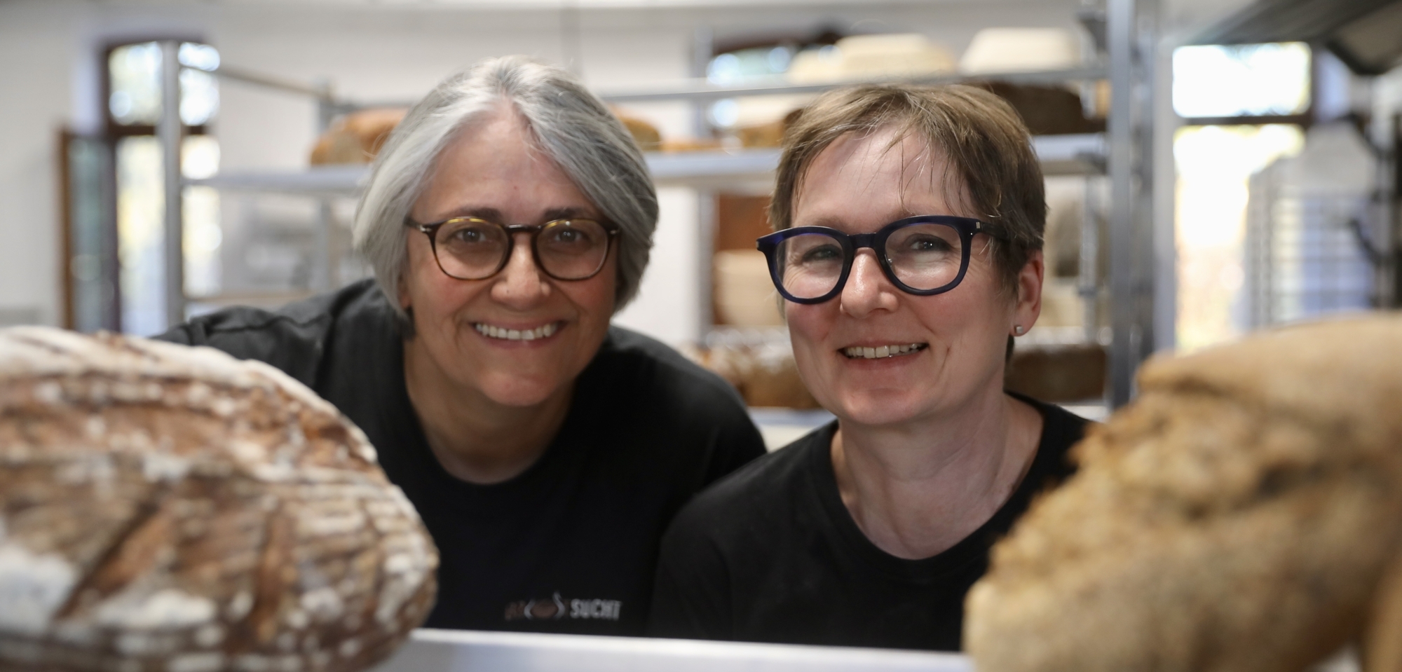 Die Eröffnung der Manufaktur „Brotsucht“ rückt näher – und der neue große Ofen läuft schon auf Hochtouren. Er ist der Blickfang in der Backstube auf dem Hess-Areal, schließlich können hier bis zu 60 Brote gleichzeitig gebacken werden. Noch backen die beiden Inhaberinnen Susanne Ebrahim und Tina Laubengeiger nicht für den Verkauf, sondern um sich mit dem Ofen und den Backzeiten vertraut zu machen. Schließlich soll zur Neueröffnung am Dienstag, 8. November, alles glatt laufen.