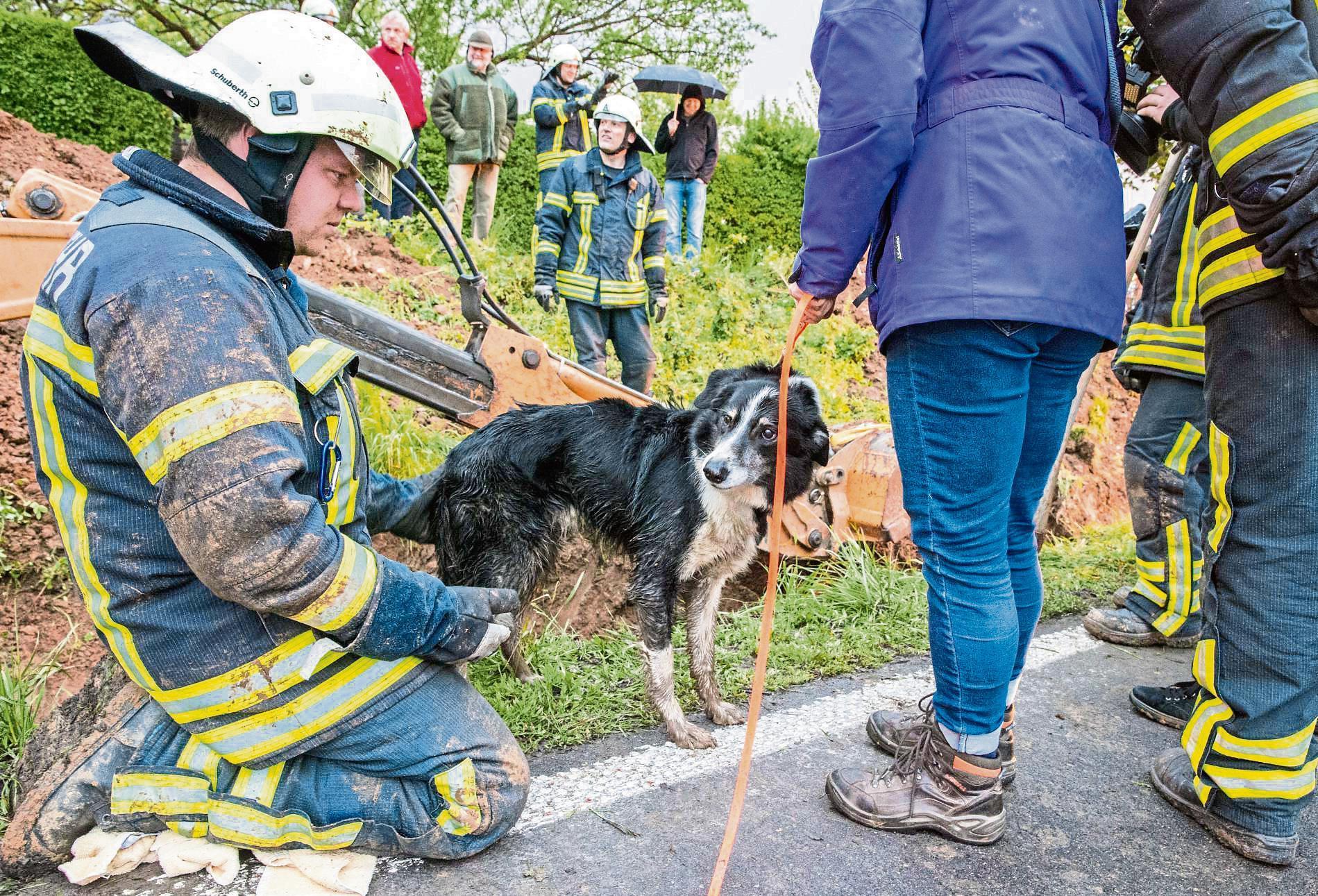 „Einsatz nach über 3,5 Stunden für uns beendet“, twitterte die Feuerwehr Waiblingen am Donnerstagabend, und für die eine oder andere Waschmaschine begann der Arbeitstag erst dann: Von oben bis unten verdreckt verließen Feuerwehrleute den Einsatzort. Sie hatten heftig zu buddeln gehabt, bevor ein Bagger die Schwerstarbeit übernahm. Er legte ein Stück weit den Kanal entlang der Kreisstraße zwischen Bittenfeld und Hohenacker frei. Nach langer Suche hatten Einsatzkräfte den Hund dort verzweifelt winseln hören.