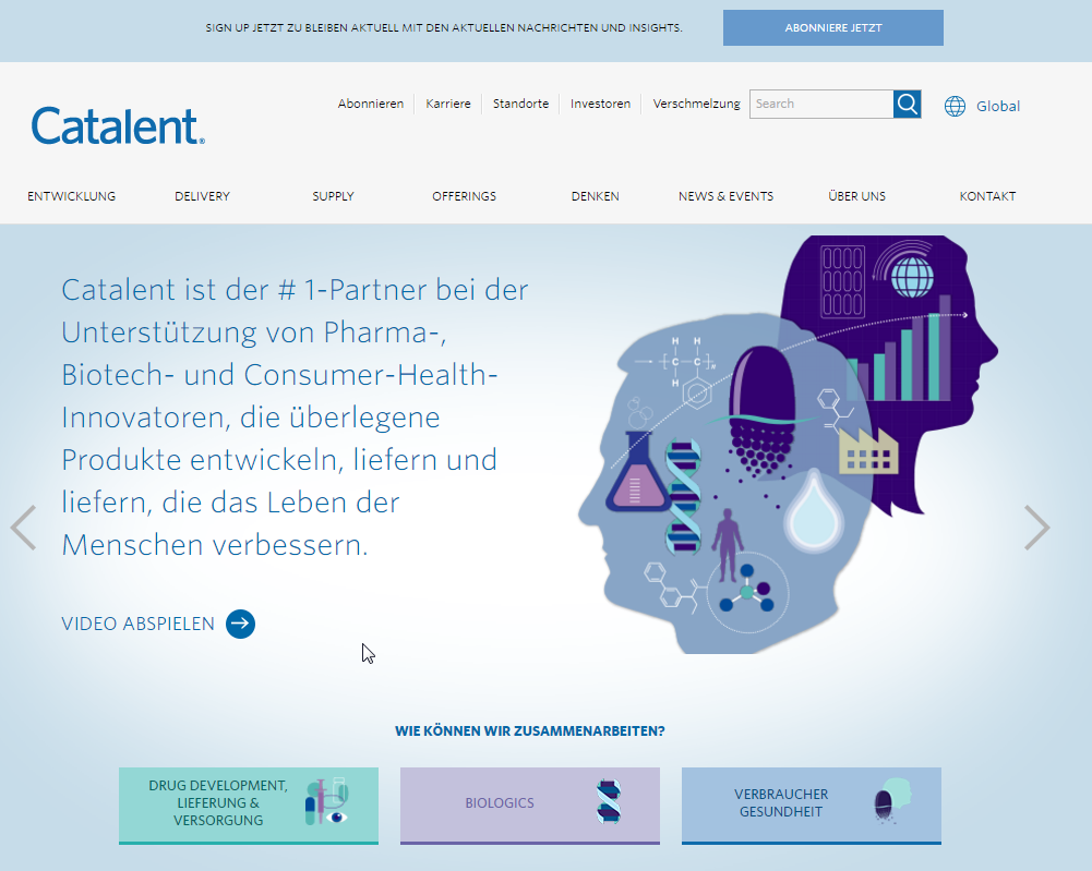 Catalent: Kein eigener deutscher Internetauftritt
